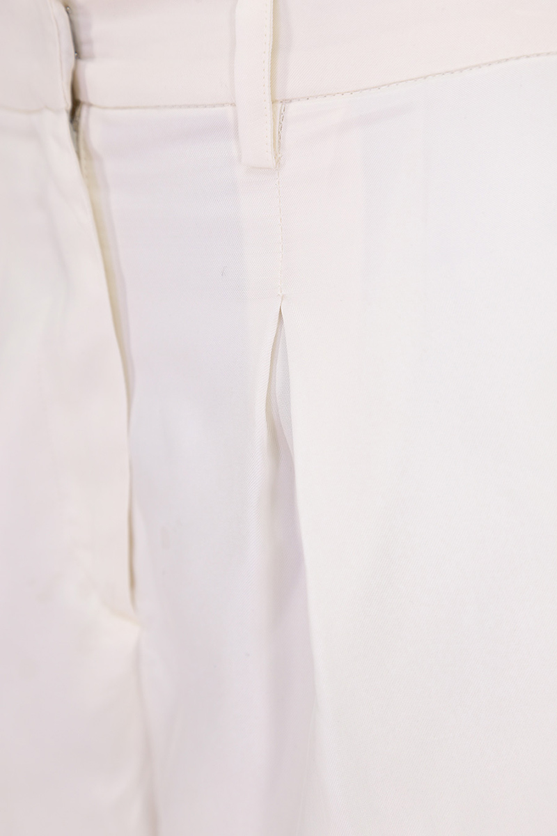 Bermudashorts aus Cupro und Viskose mit Beutel und Paspeltaschen auf der Rückseite. Stirnbeine. Das Model ist 1,68 groß und trägt Größe 38.