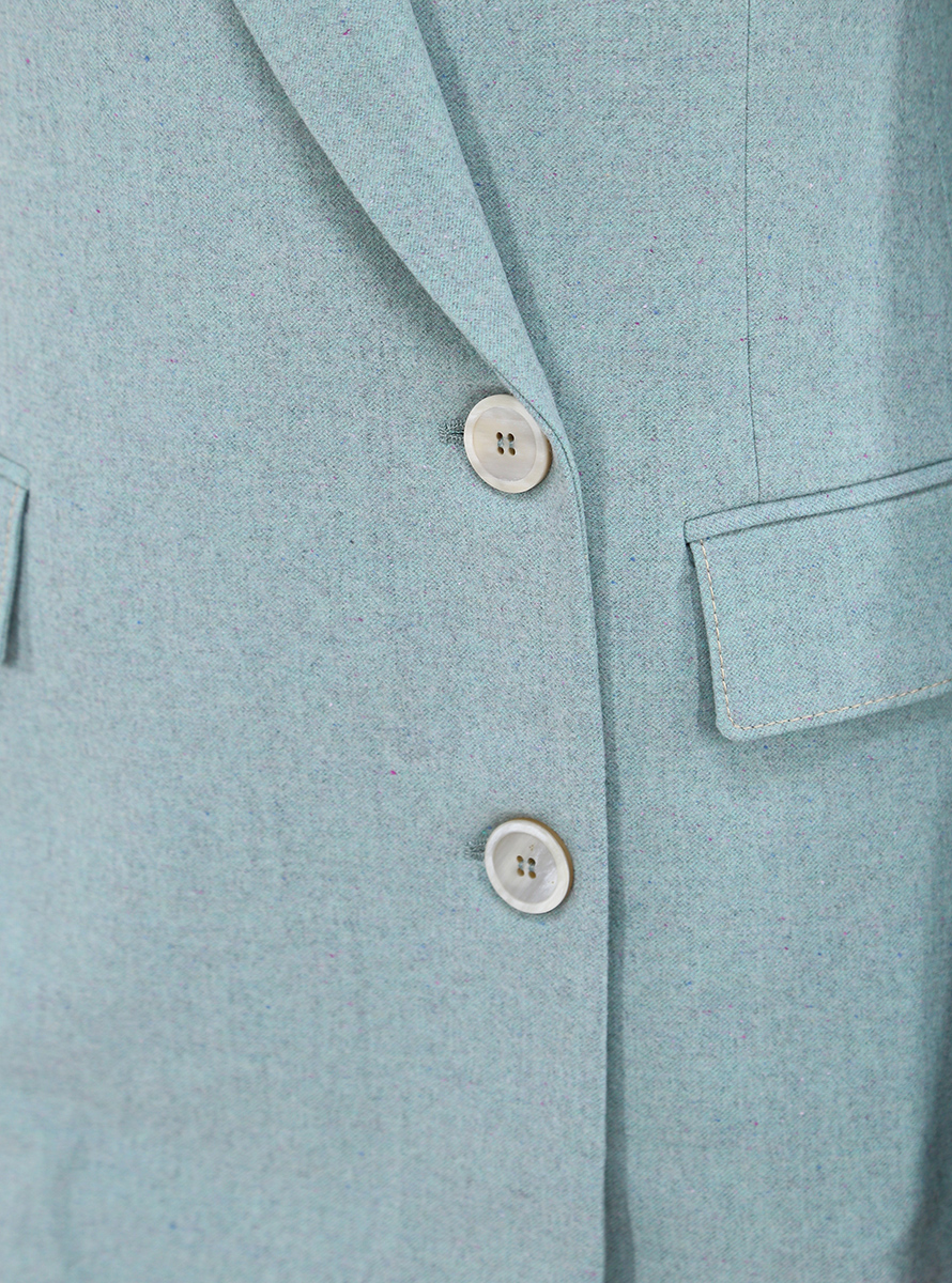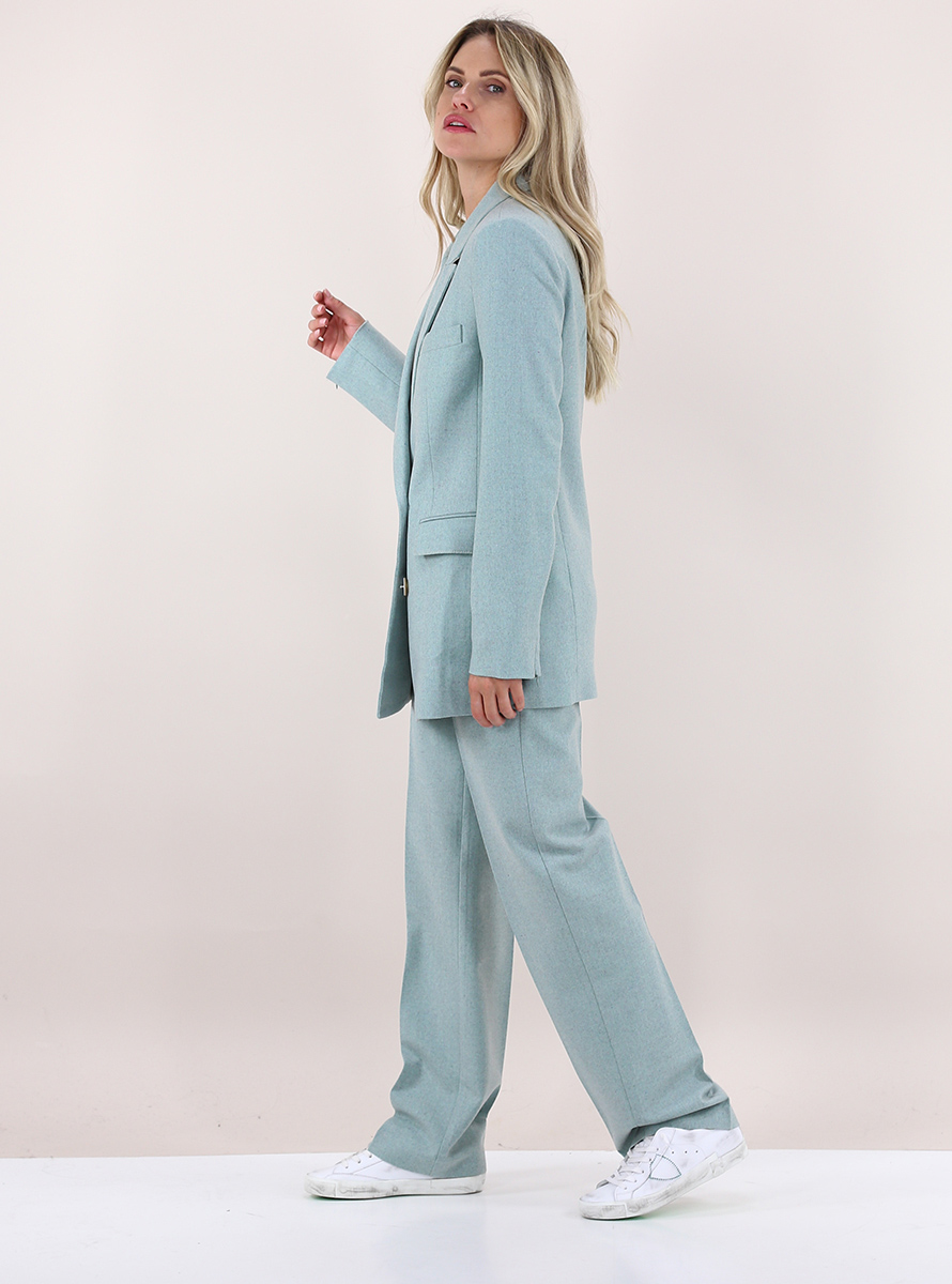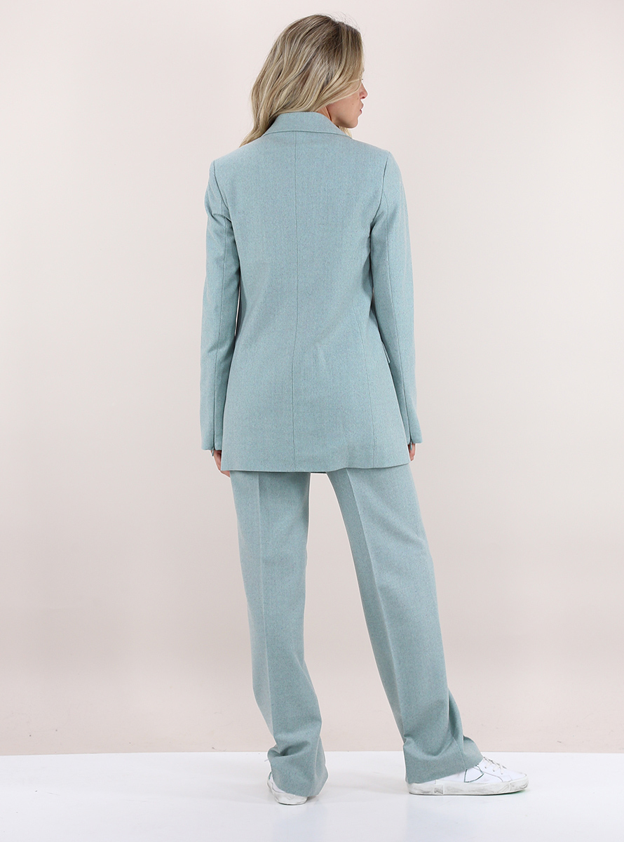 Beatrice B Blazer aus gefütterter Mischung aus Wolle, Viskose und elastischer Seide. Lange Ärmel und Speerausschnitt. Taschen mit Patten und doppelreihigen Verschlussknöpfen. Das Model ist 1,67 groß und trägt Größe 38.