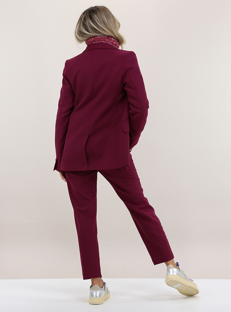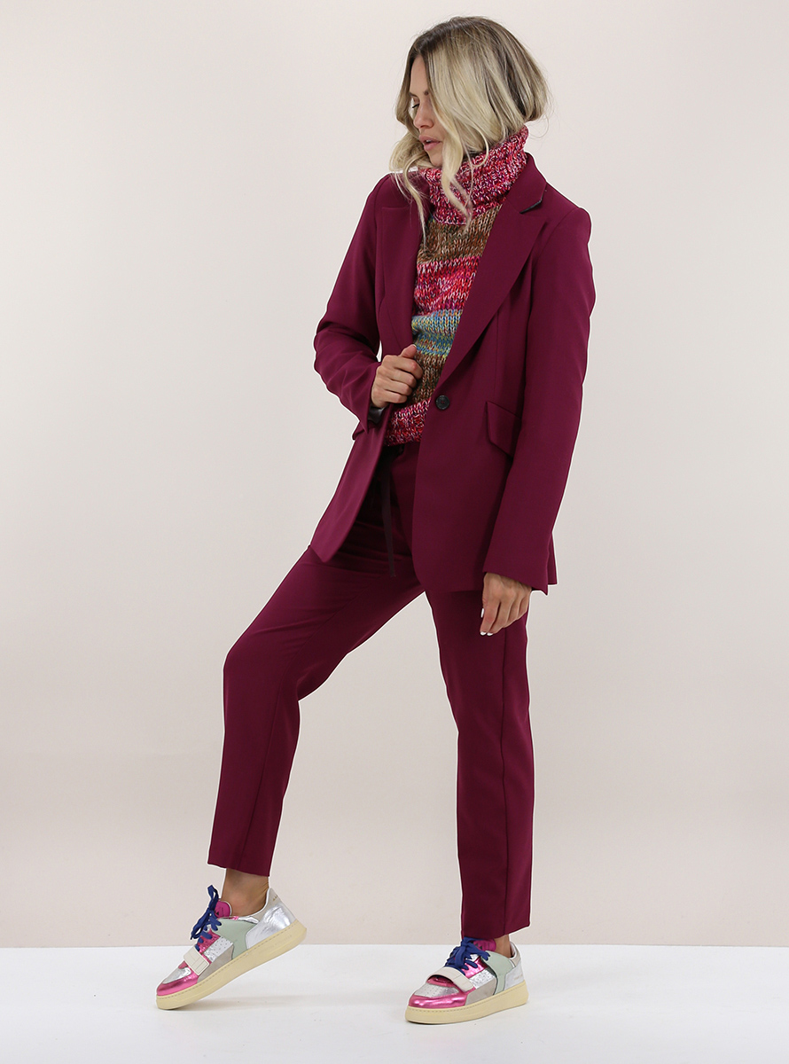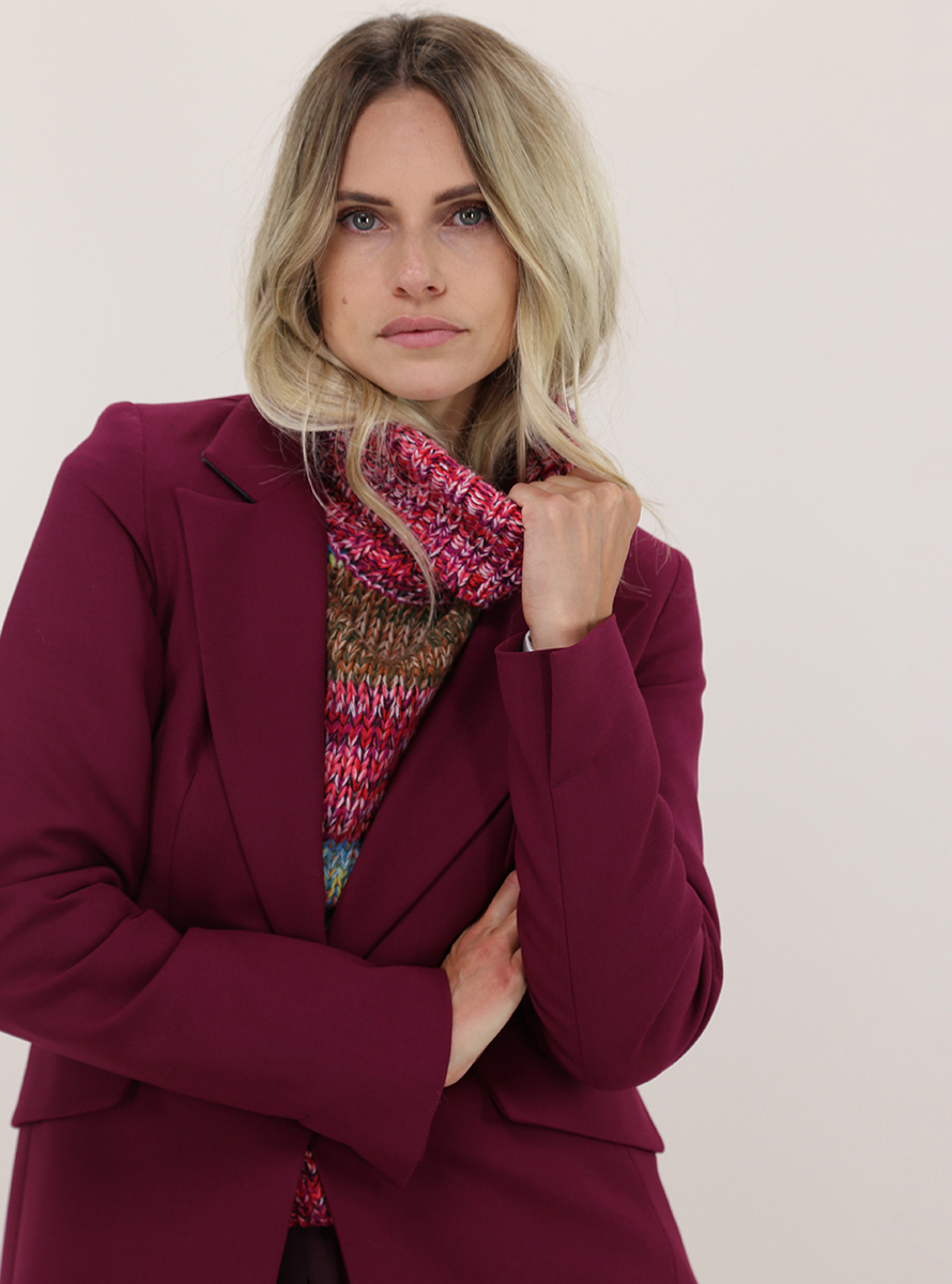 Semicouture-Blazer aus gefütterter Woll-Viskose-Mischung. Lange Ärmel und umgekehrter Kragen. Pattentaschen und Rückenschlitz. Verschlussknopf vorne. Das Model ist 1,68 groß und trägt Größe 38.