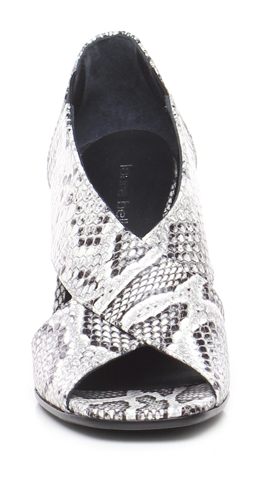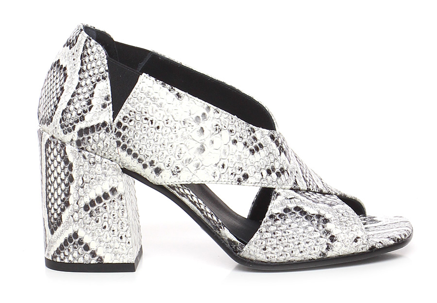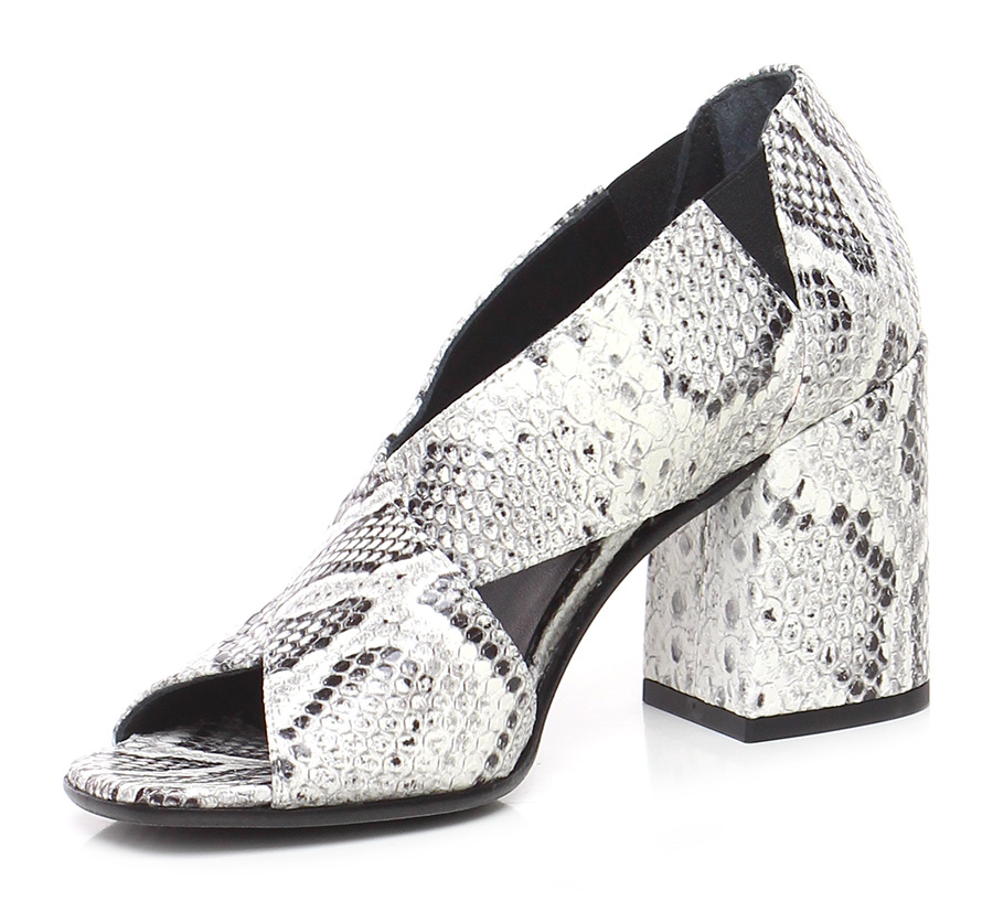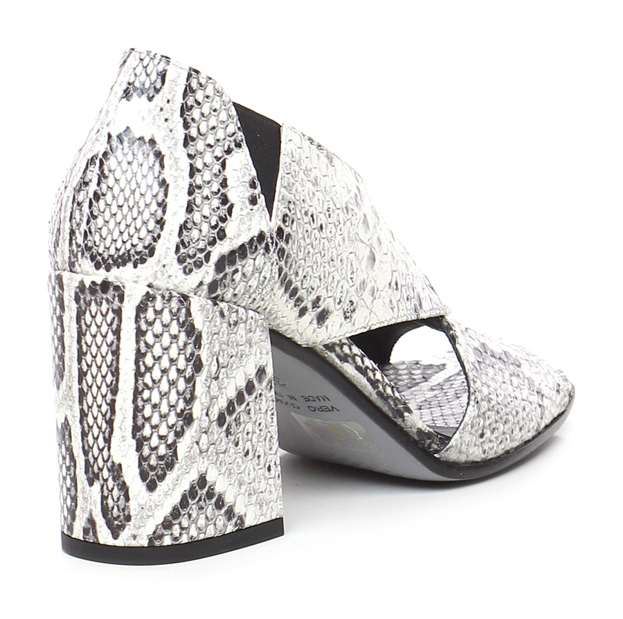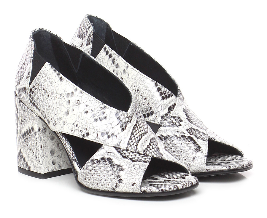 Schuh mit offenem Absatz aus Leder in Python-Optik mit elastischen Einsätzen, Ledersohle. 85 Absatz, gefüttert mit Leder mit Python-Print.