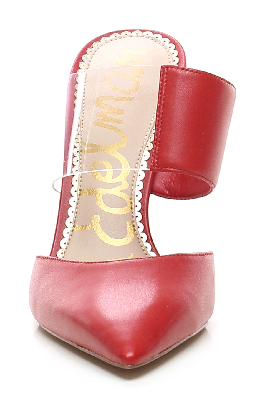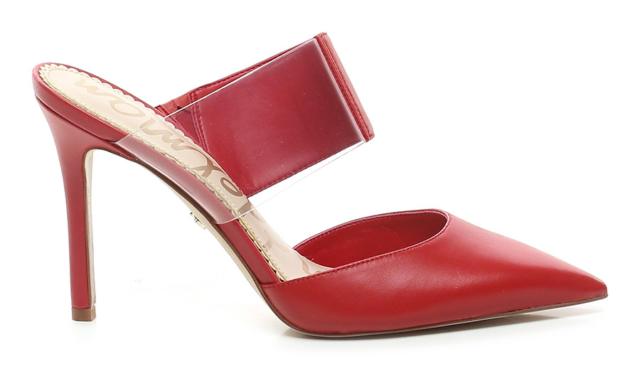Schuh mit Absatz aus Leder mit Vorderband aus PVC und Leder. Gummisohle, 105er Absatz.
