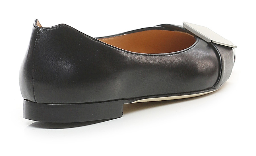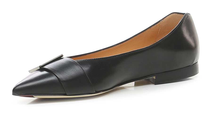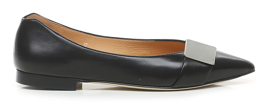 Lederschuh mit vorderem Metalleinsatz und Leder- und Gummisohle. Absatzhöhe 15mm.
