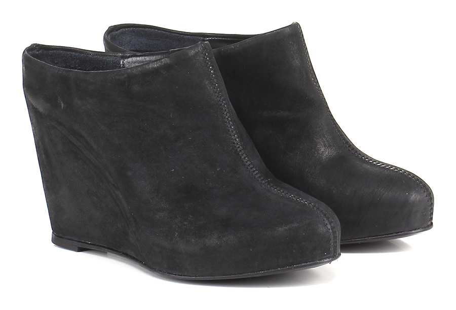 Keilabsatz aus gebürstetem Vintage-Leder mit Leder- und Gummisohle, Absatz 100, Plateau 20 mit Absatz 80.