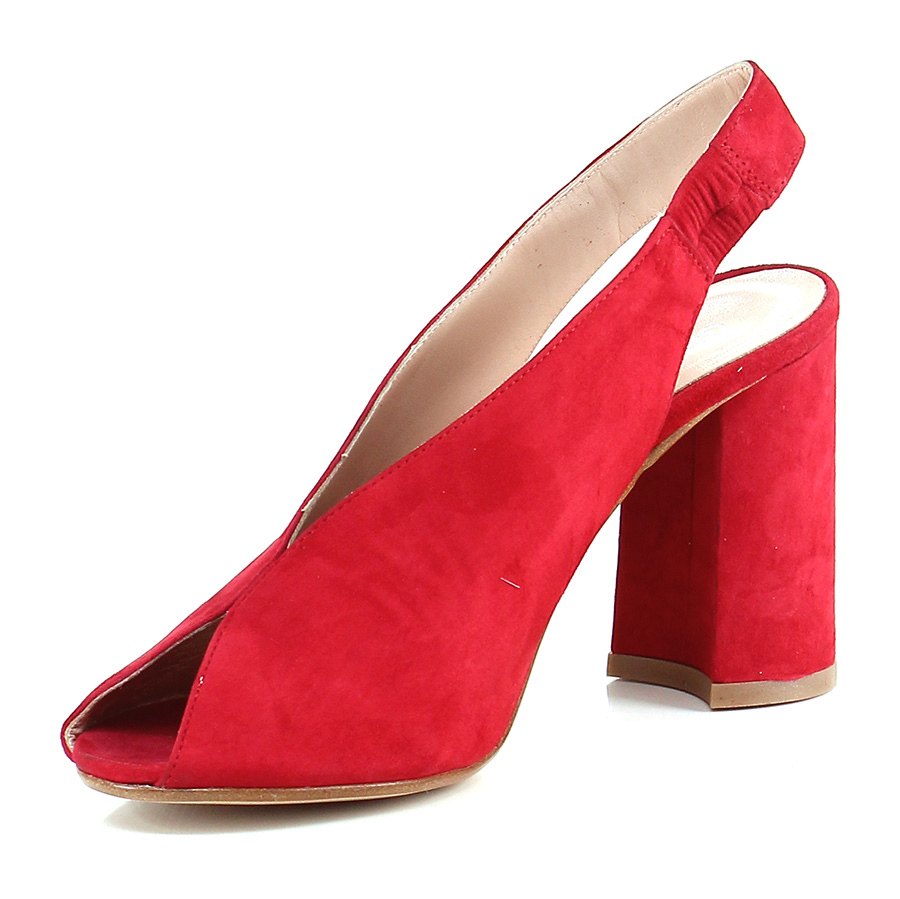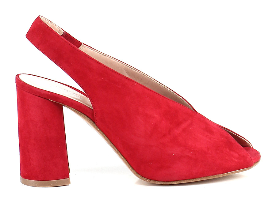 Hohe Wildledersandale mit Riemchen und Ledersohle. 95 Absatz.