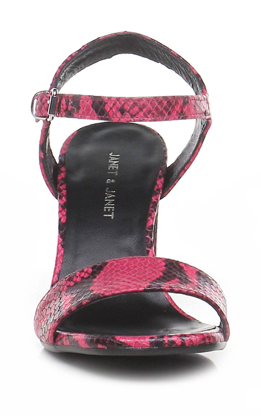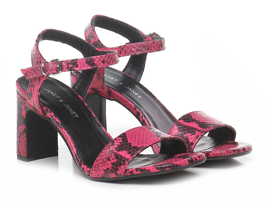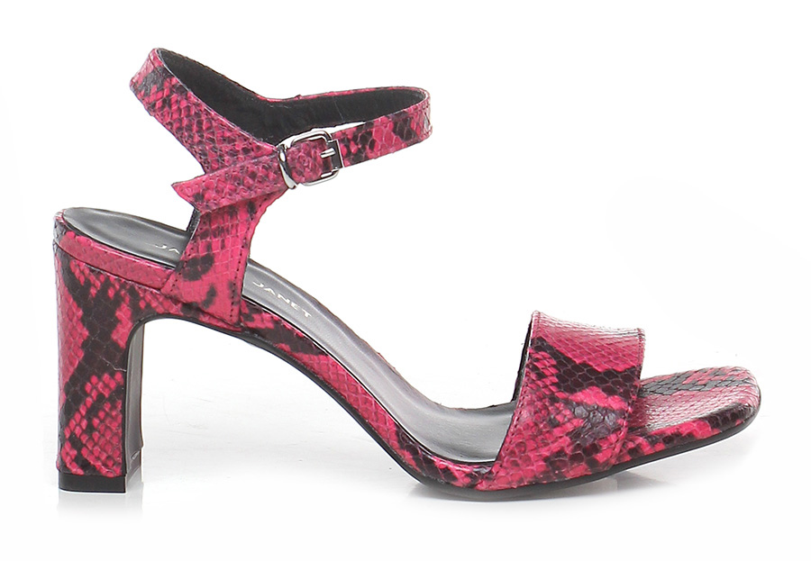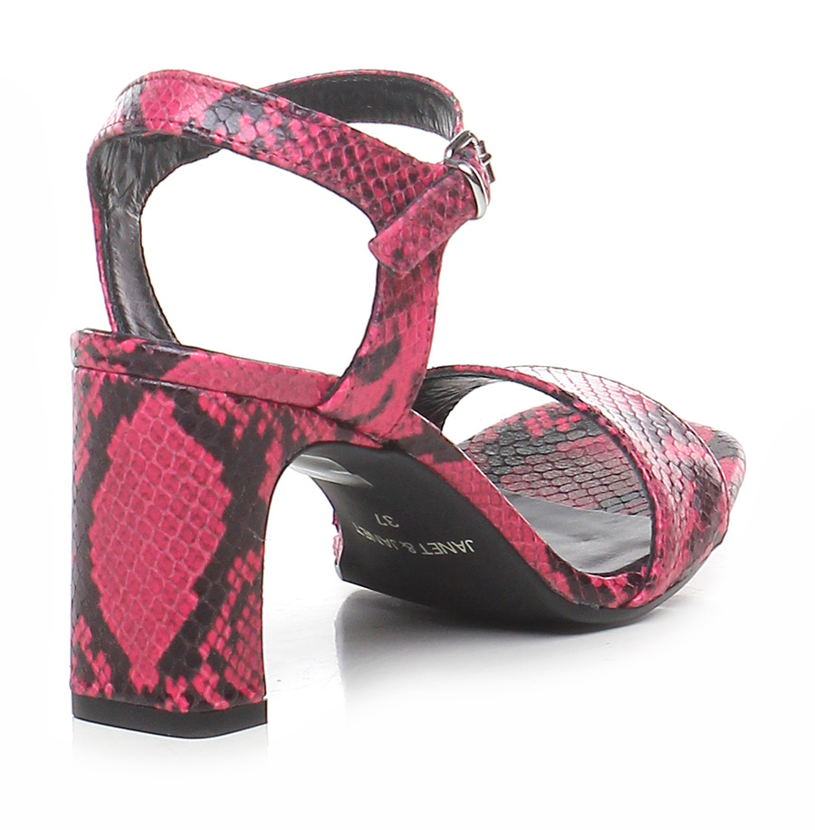 Hohe Sandale aus Leder mit Python-Print, Knöchelriemchen und Gummisohle. 85 Absatz.