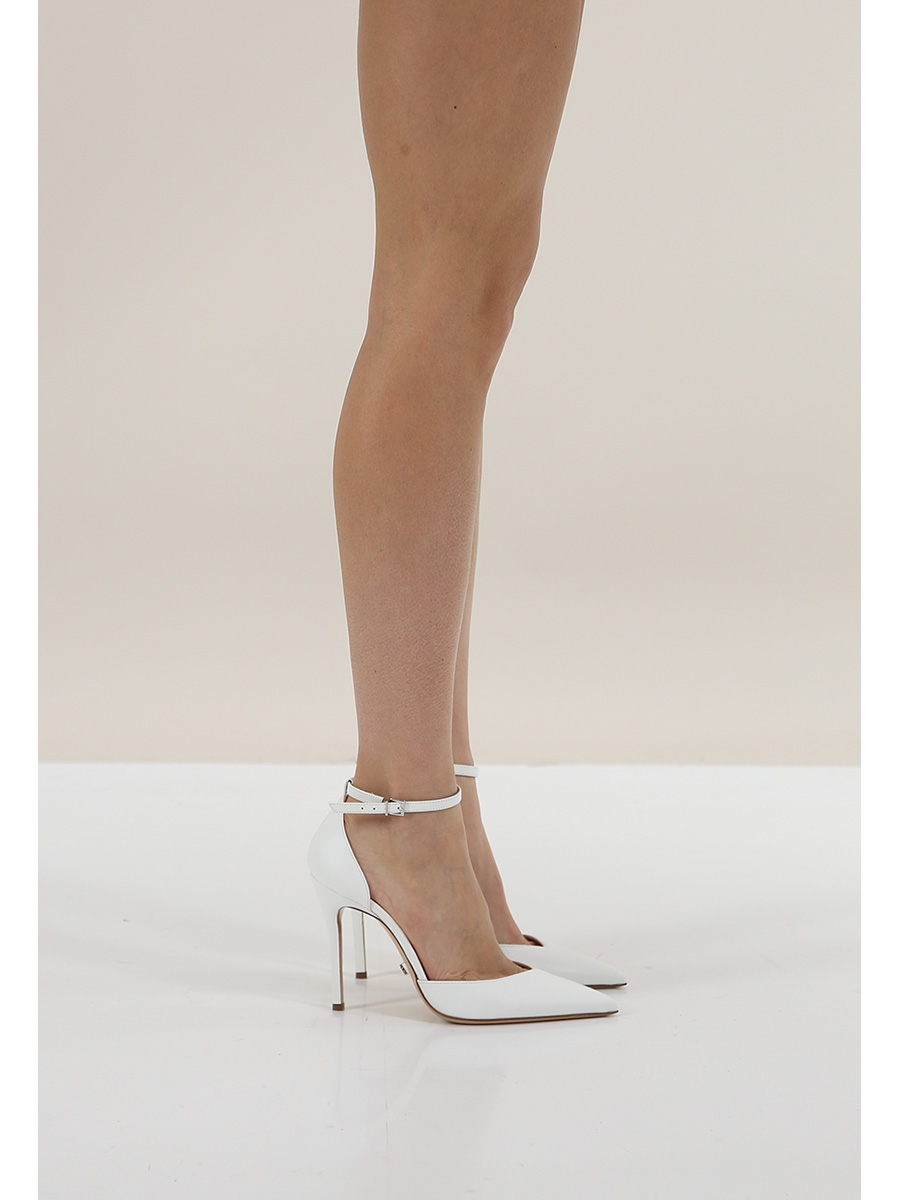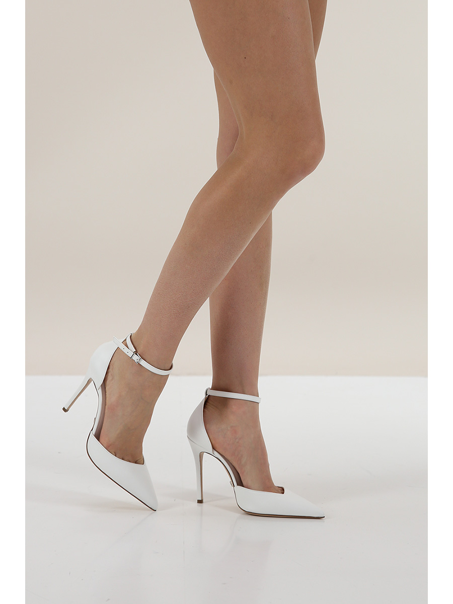 Scarpa in pelle con cinturino alla caviglia. Suola in cuoio. Altezza tacco: 105mm. Tacco foderato in pelle.