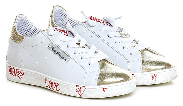 Sneaker in pelle e pelle laminata vintage con suola in gomma vintage. Tacco 30.