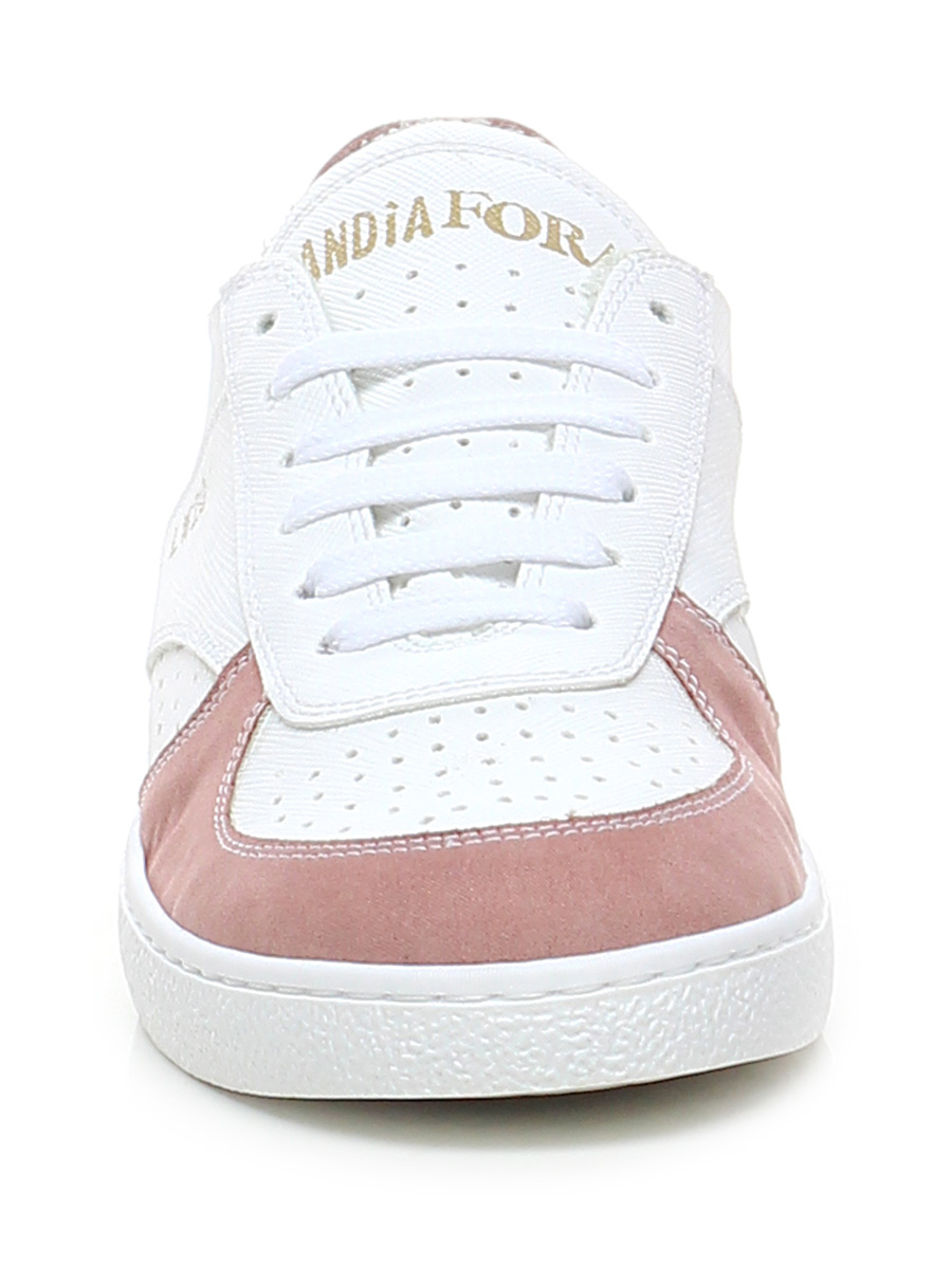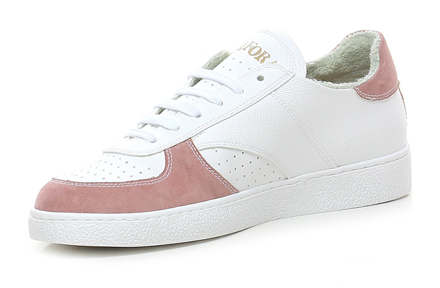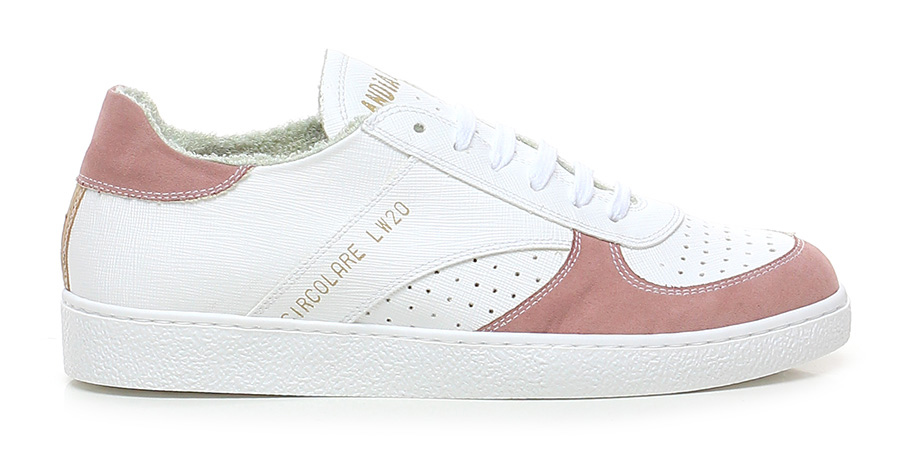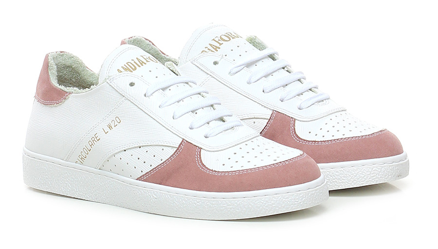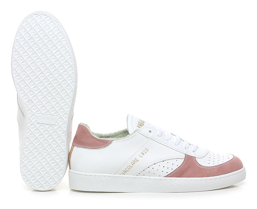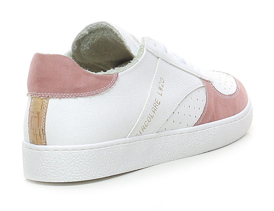 Sneaker aus recyceltem Material mit Saffiano-Effekt und Ferse und Spitze aus Stoff mit Wildleder-Effekt. Lasergeschnittenes Obermaterial und Zunge, Gummisohle. Sohlenhöhe: 25. Plateau 20 mit Absatz 5. Innen mit Frottee gefüttert mit Korkfußbett.