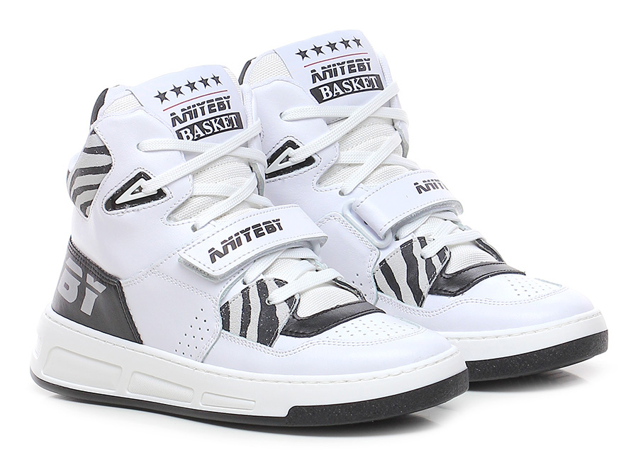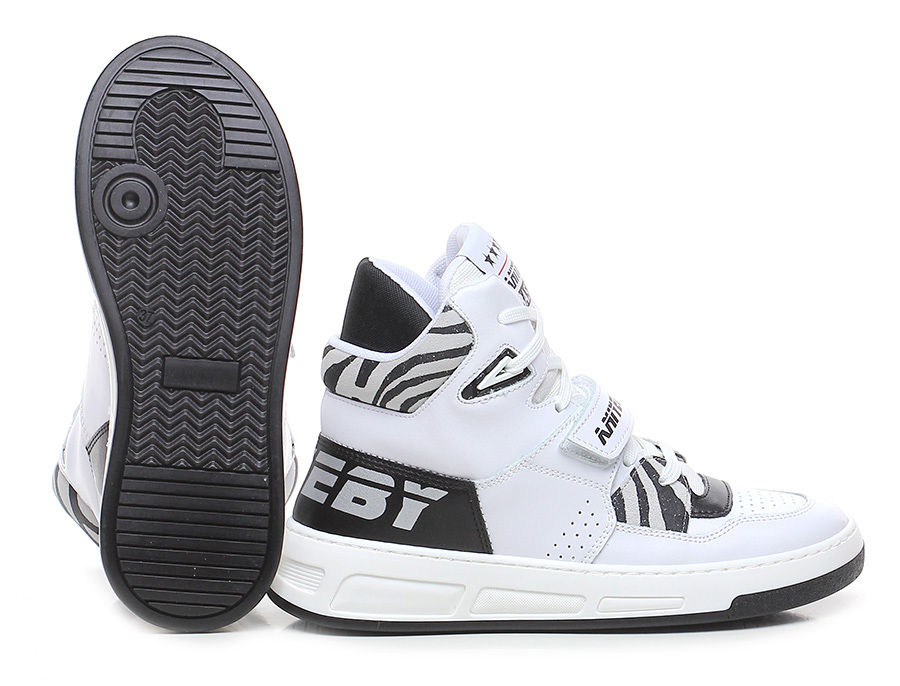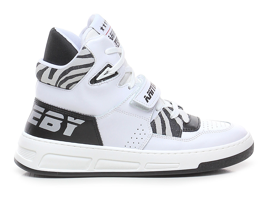 Basket-Sneaker aus Leder mit Einsätzen aus Wildleder mit Zebra-Print. Frontreißverschluss mit Logo, Gummisohle. Sohlenhöhe: 45, Plateau 25 mit Absatz 20. Innenkeil 30, schmale Passform.