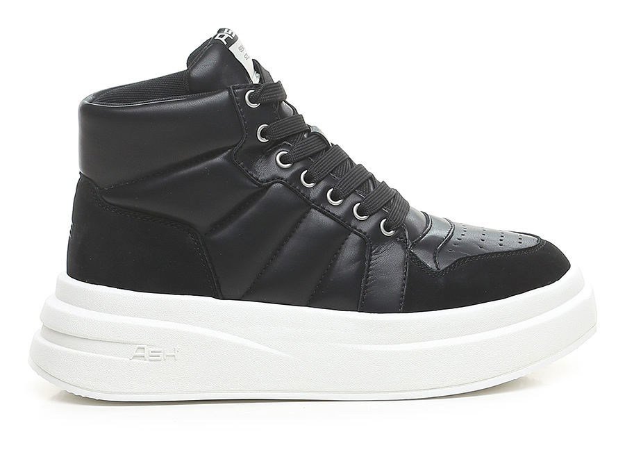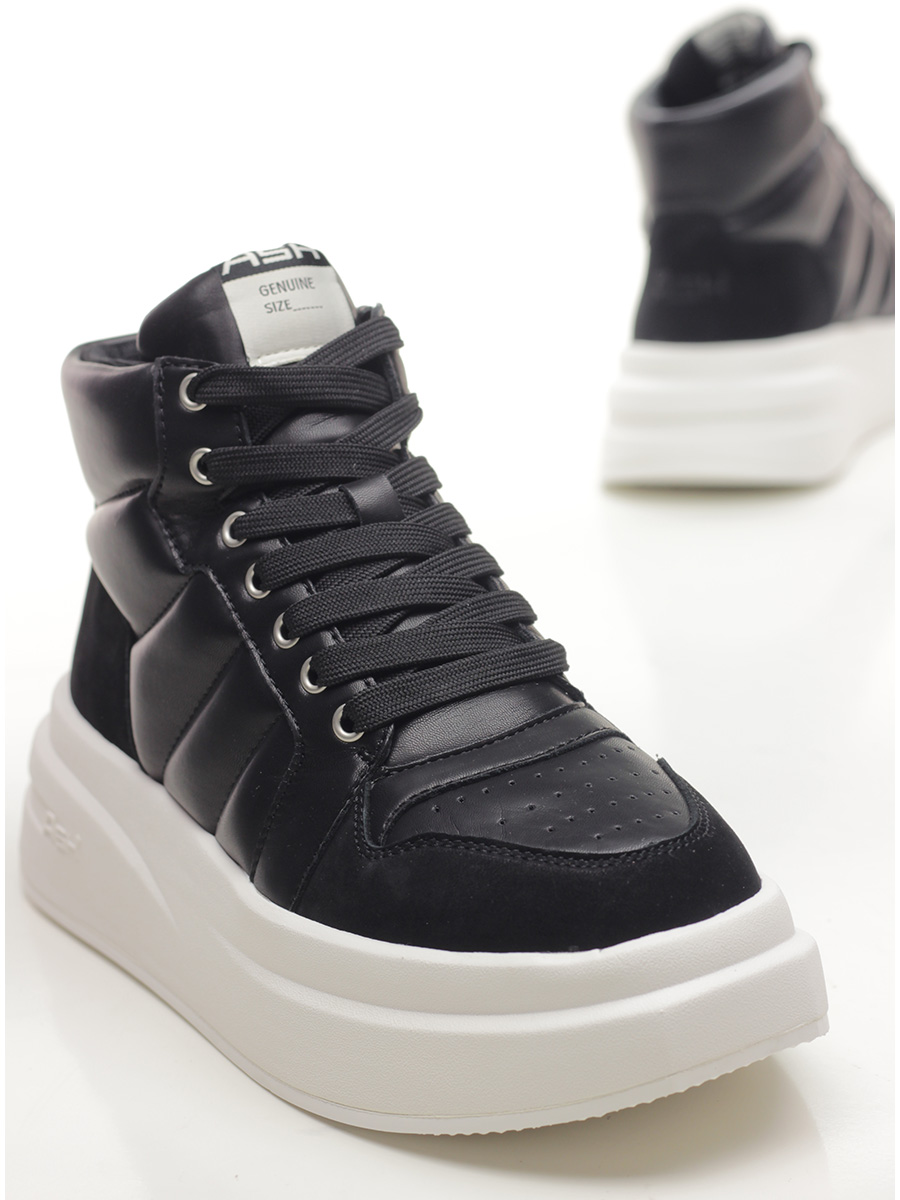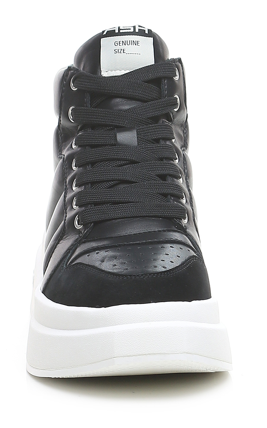Sneaker aus Kunstleder und Nubukleder mit Gummisohle. 50 mm Absatzhöhe, 40 mm Plateau mit 10 mm Absatz.