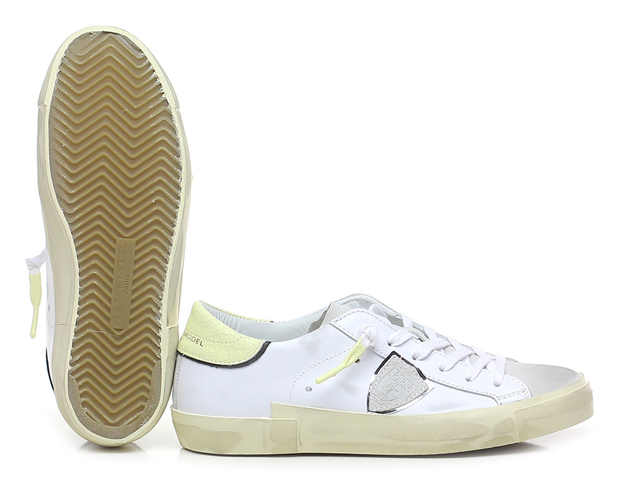 Sneaker aus Leder und Wildleder mit Vintage-Effekt und Fersenlasche aus Leder mit Crack-Effekt. Angepasst durch eine besondere Bandage der Sohle, absichtlich nicht perfekt und aus diesem Grund von der Marke aus gebürstetem Gummi patentiert. Sohlenhöhe 30, Plattform 25 mit Absatz 5.