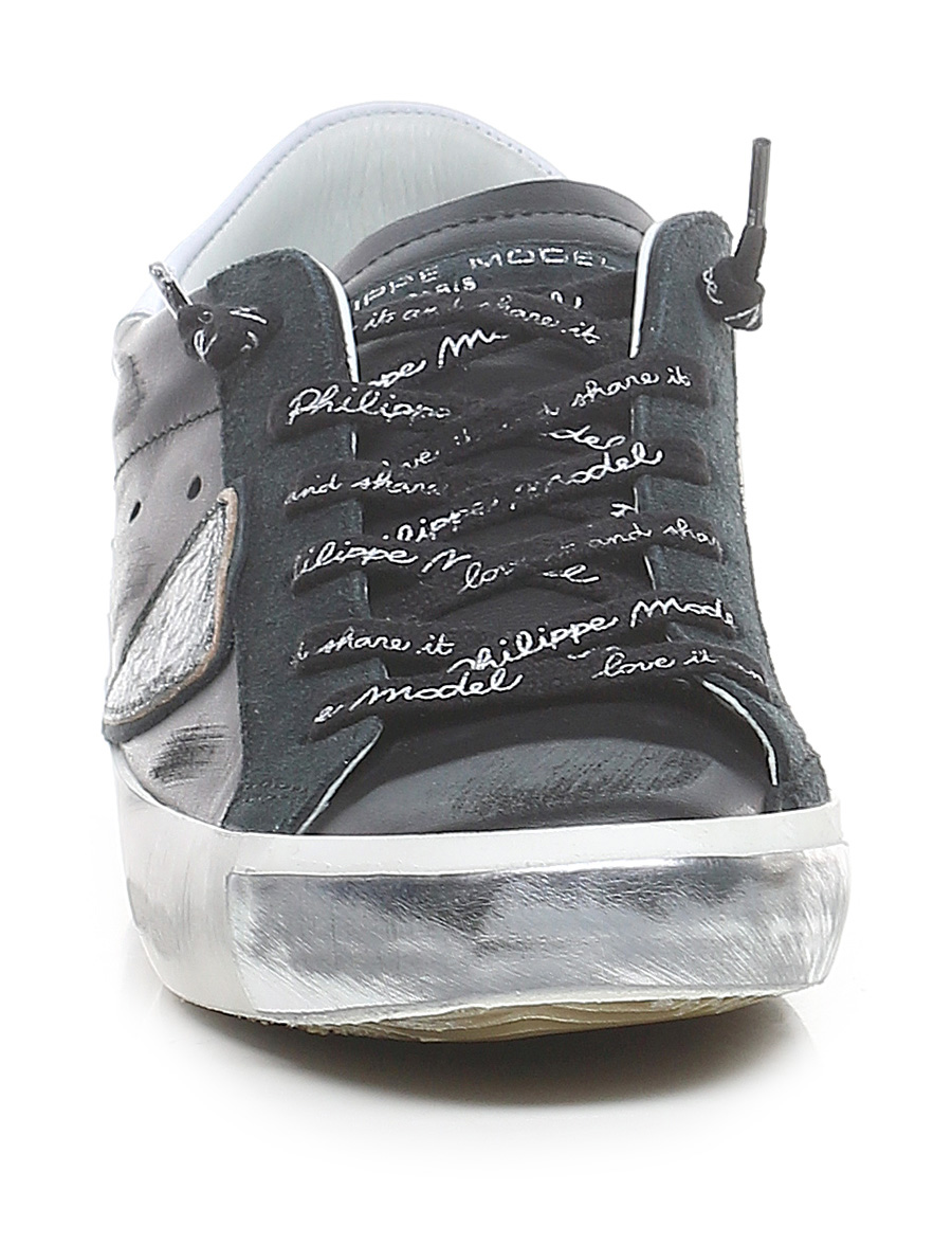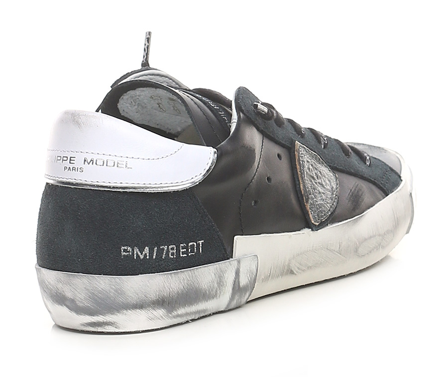 Sneaker aus Leder und Wildleder mit Vintage-Effekt und Gummisohle mit Vintage-Effekt. 35 mm Sohlenhöhe, 25 mm Plateau mit 10 mm Absatz.