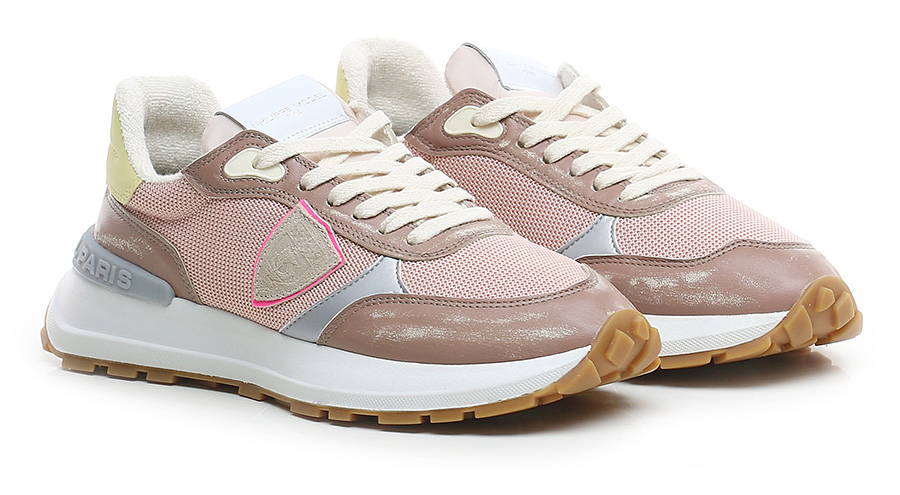 Sneaker aus Stoff und Leder mit Vintage-Effekt, Gummisohle. Absatzhöhe 40 mm, Plateau 20 mit 20 mm Absatz.