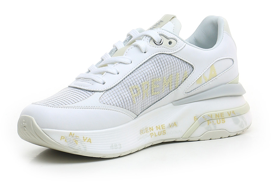 Premiata, die Marke ist Synonym für Avantgarde und Ausdruck, hat ein einziges Ziel: der ideale Reisebegleiter für alle zu sein, die Klischees hassen und an Freiheit glauben. Die Schuhe von Premiata stehen für extreme Kreativität, sie werden von Hand gefertigt, das Material wird ausgehend vom Weißen modelliert, das große Freiheit für die Entwicklung der Formensprache lässt. Der Schuh von Premiata, mit großer Geschicklichkeit und viel Liebe zum Detail gefertigt, besticht durch Eleganz, Komfort und ein unverwechselbares Design.