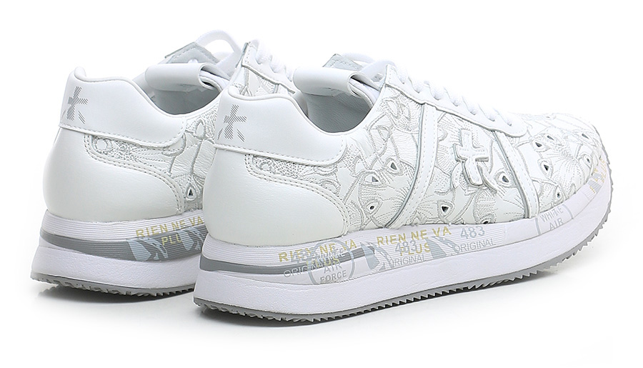 Premiata, die Marke ist Synonym für Avantgarde und Ausdruck, hat ein einziges Ziel: der ideale Reisebegleiter für alle zu sein, die Klischees hassen und an Freiheit glauben. Die Schuhe von Premiata stehen für extreme Kreativität, sie werden von Hand gefertigt, das Material wird ausgehend vom Weißen modelliert, das große Freiheit für die Entwicklung der Formensprache lässt. Der Schuh von Premiata, mit großer Geschicklichkeit und viel Liebe zum Detail gefertigt, besticht durch Eleganz, Komfort und ein unverwechselbares Design.