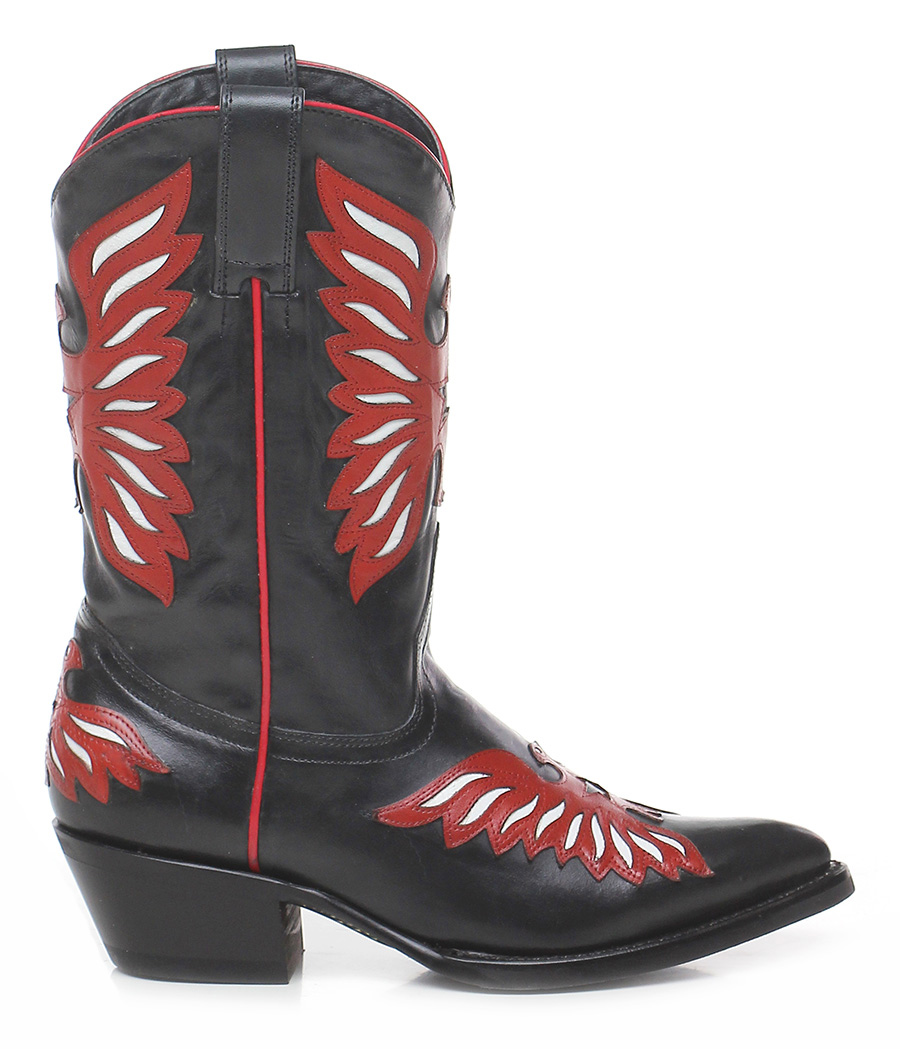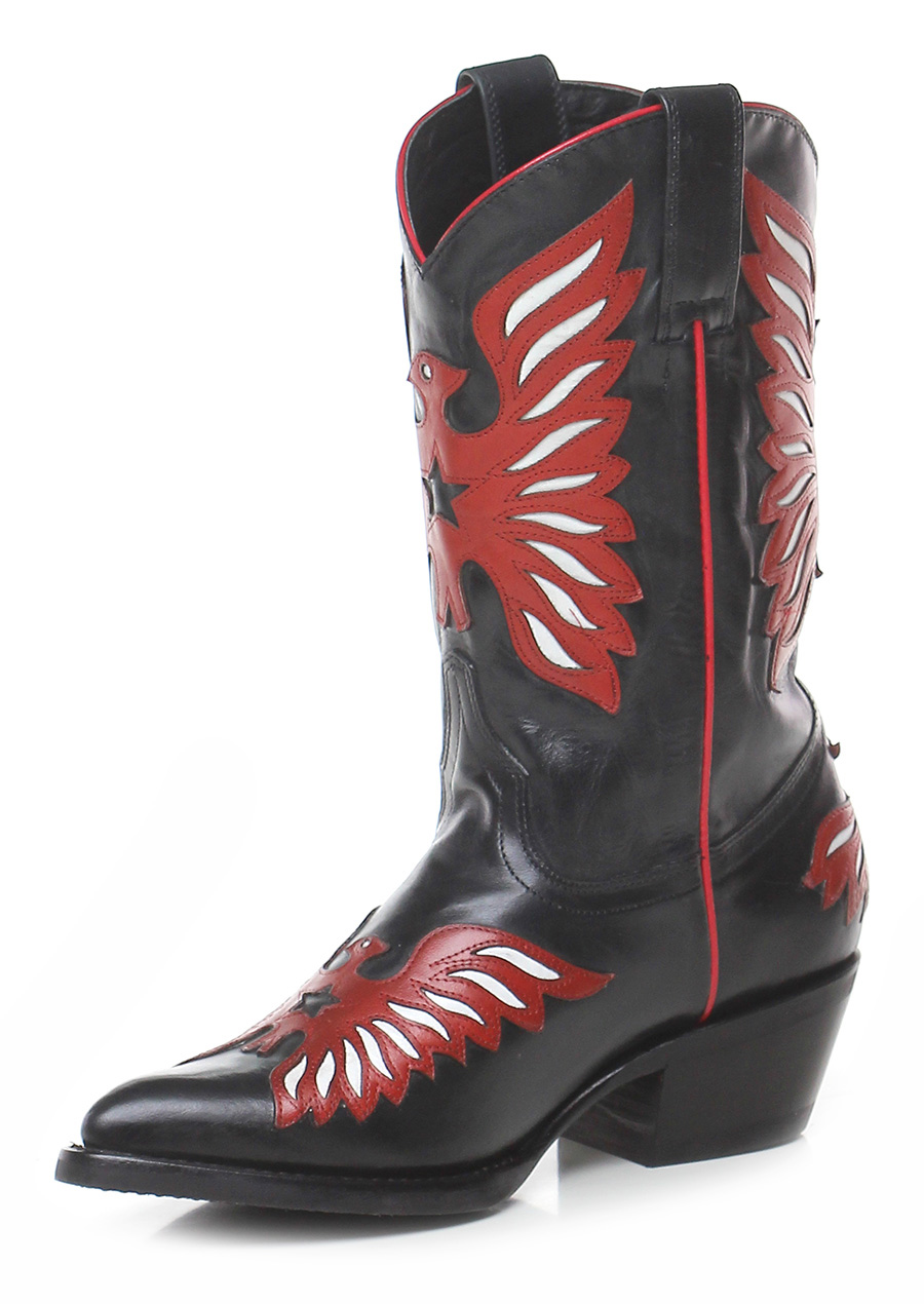 Lederstiefel in Vintage-Optik, mit Stickerei auf Schaft und Schaft, Gummisohle. Absatz 50, Beinhöhe 240.