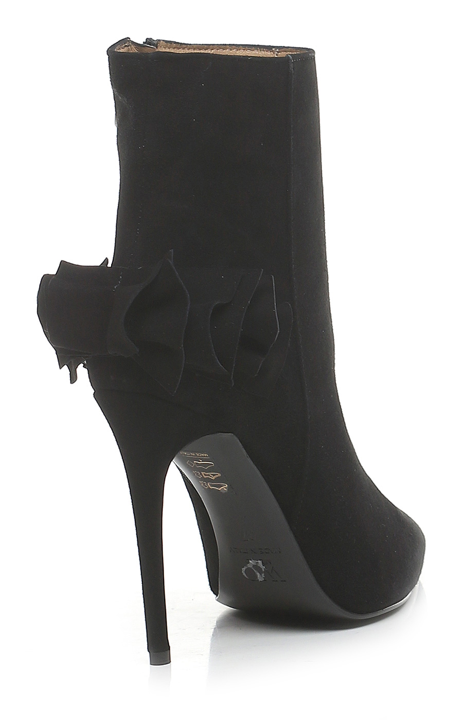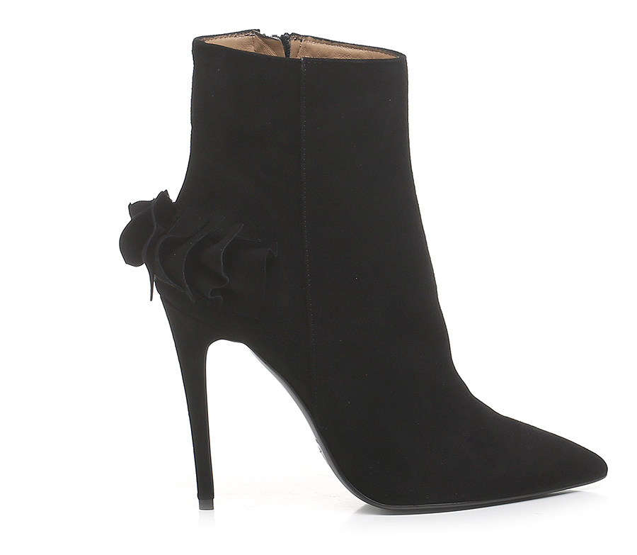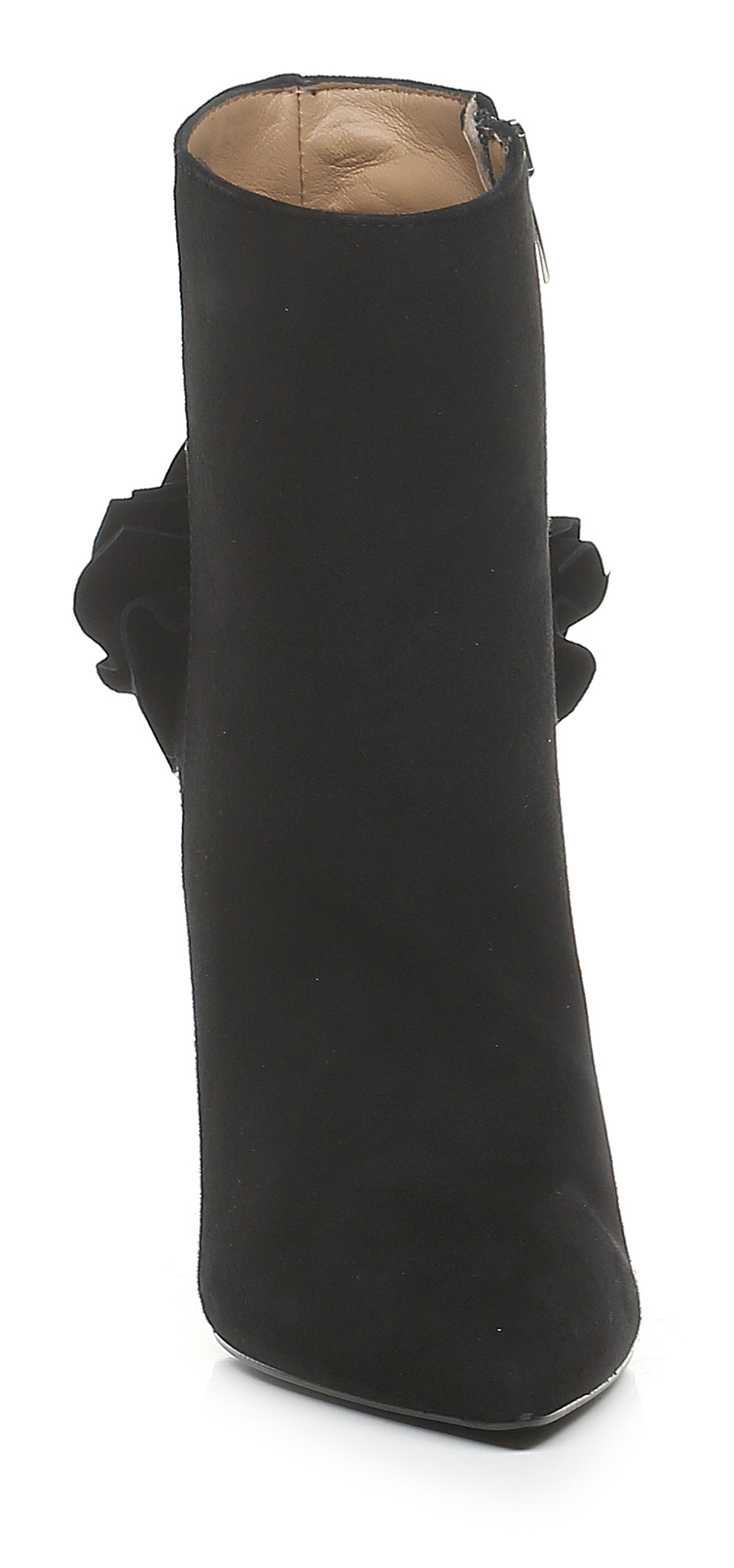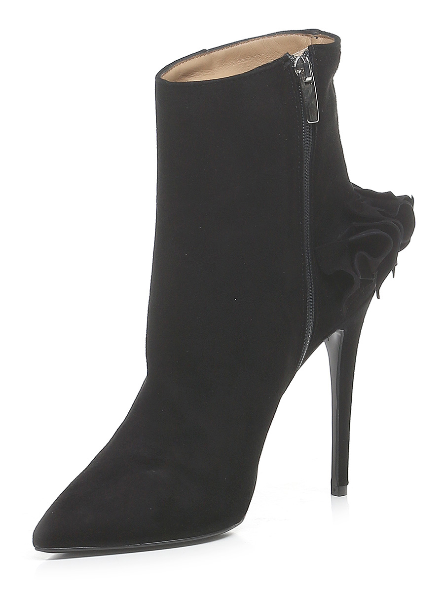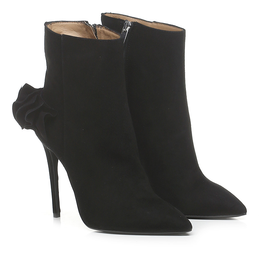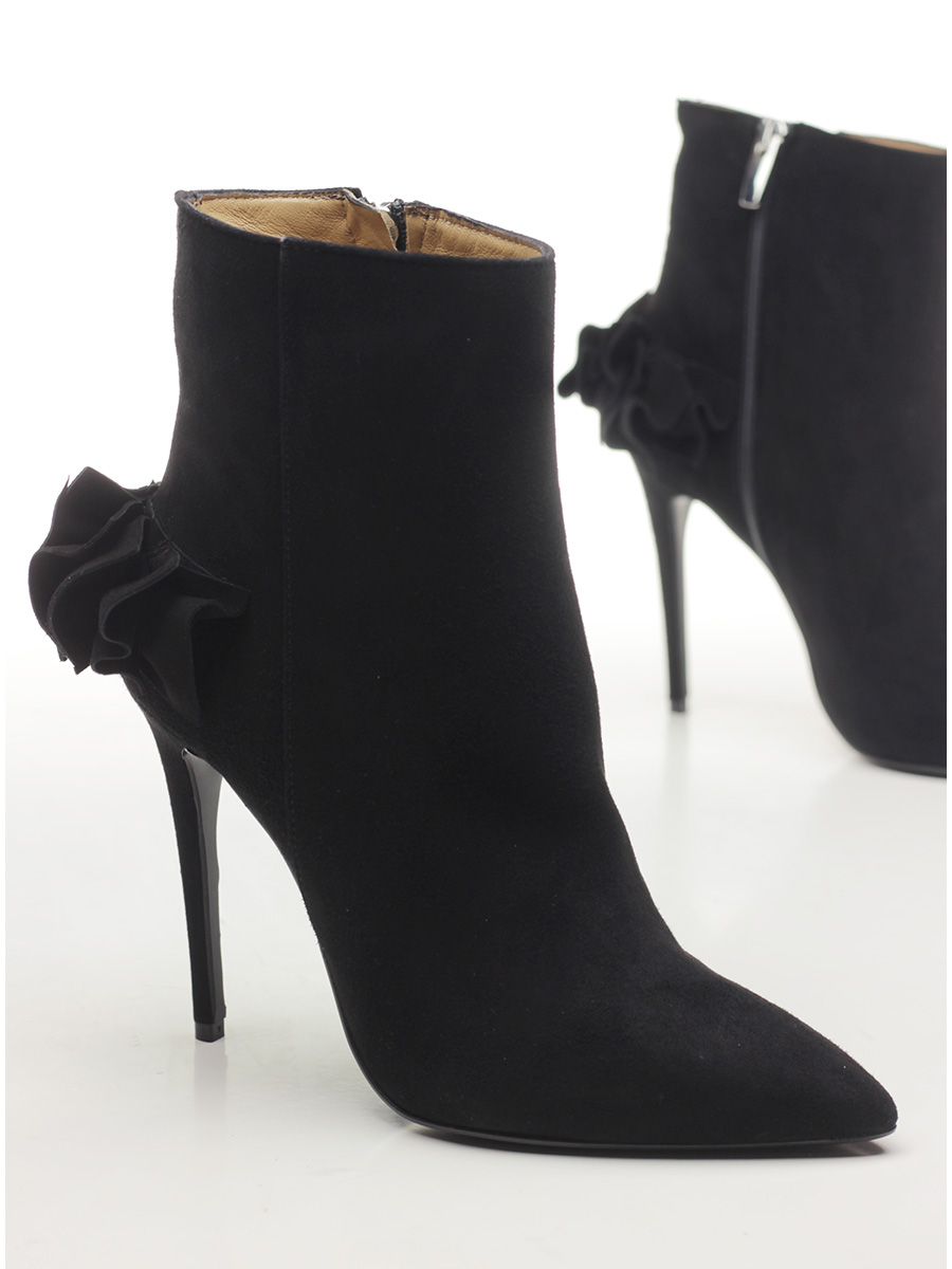 Wildlederstiefelette mit seitlichem Reißverschluss und Gummisohle. Absatzhöhe 115mm. Mit Wildleder gefütterte Ferse.