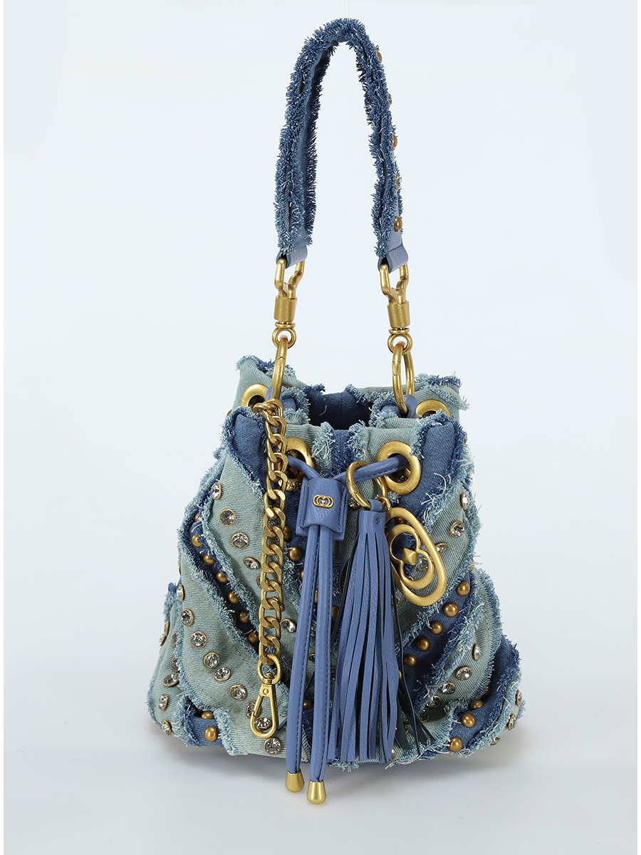 • Details: Logo, Nieten, Taschenboden mit Stützen, Borte