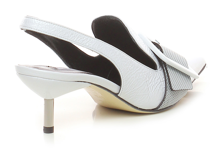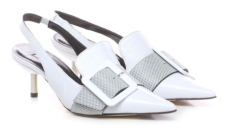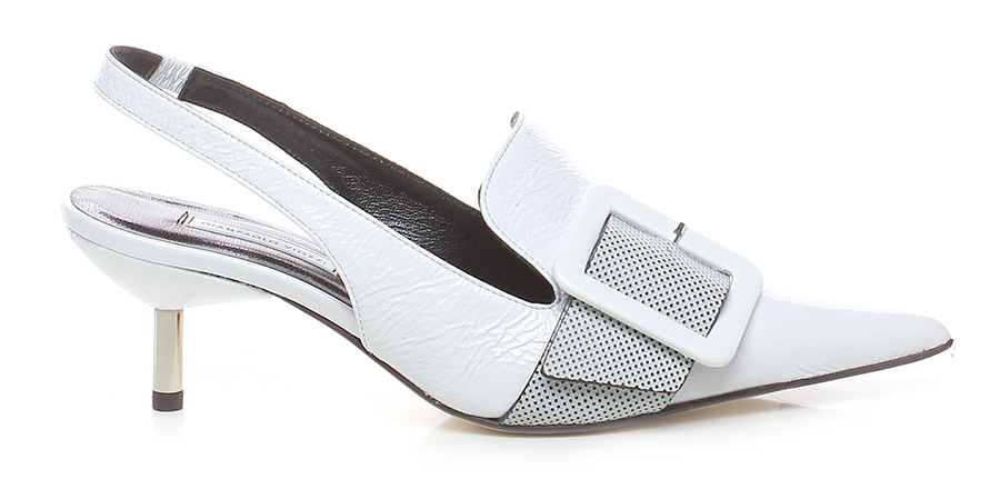 Absatzschuh aus Vintage-Naplak und -Leder mit Fersenriemchen und elastischem Einsatz. Leder- und Gummisohle, 70er Absatz mit Metallic-Effekt.