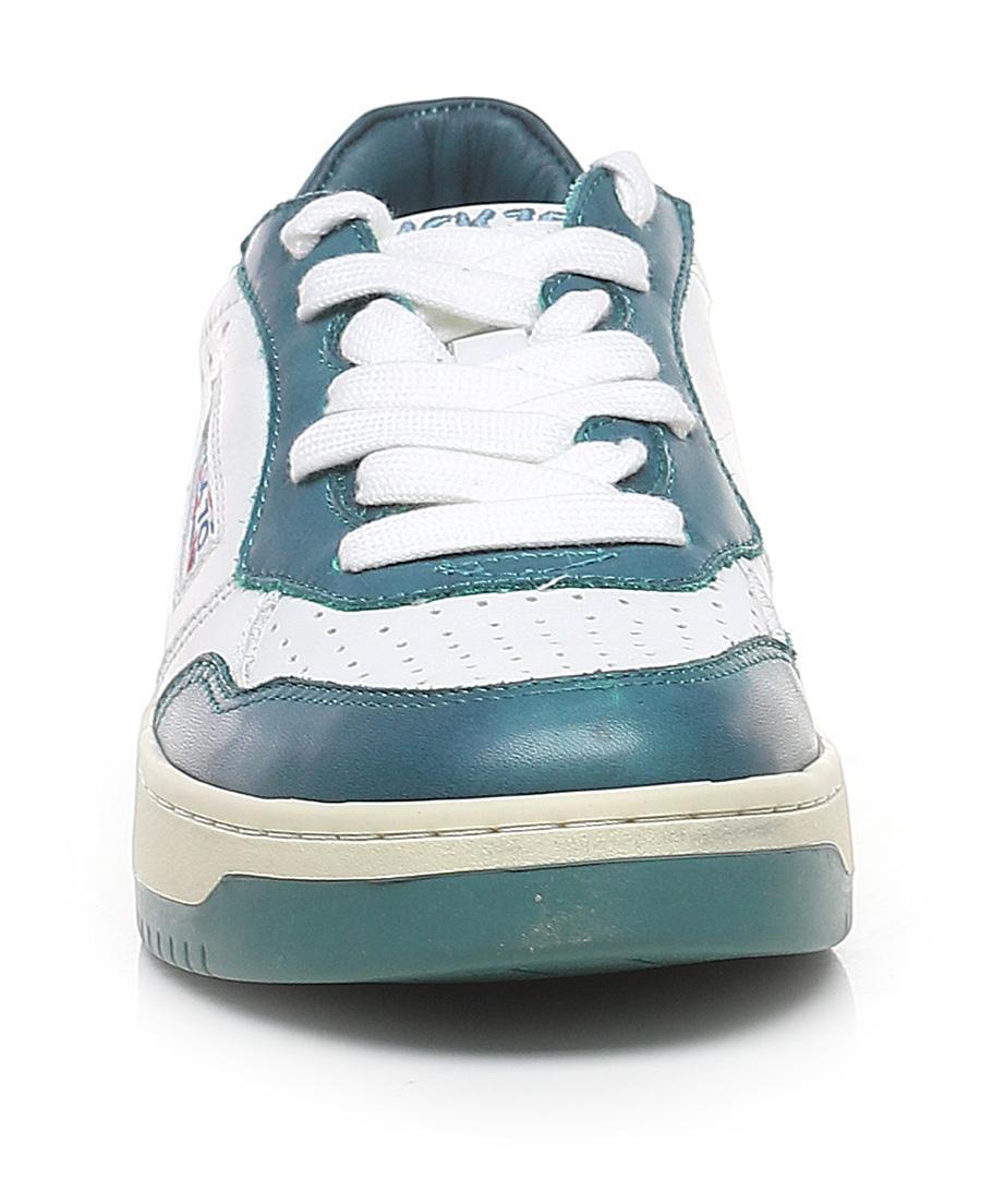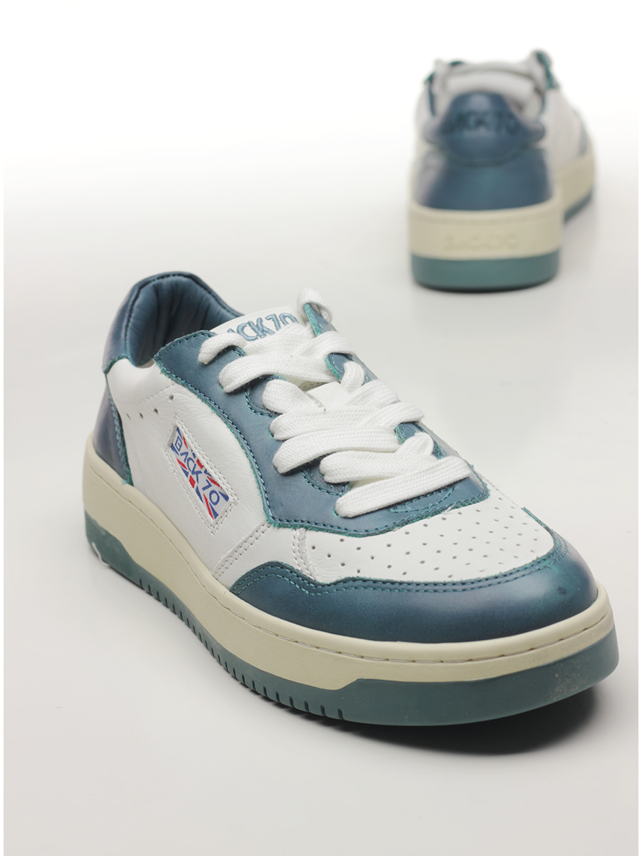 Ledersneaker mit Gummisohle. 35 mm Absatzhöhe, 25 mm Plateau mit 10 mm Absatz.