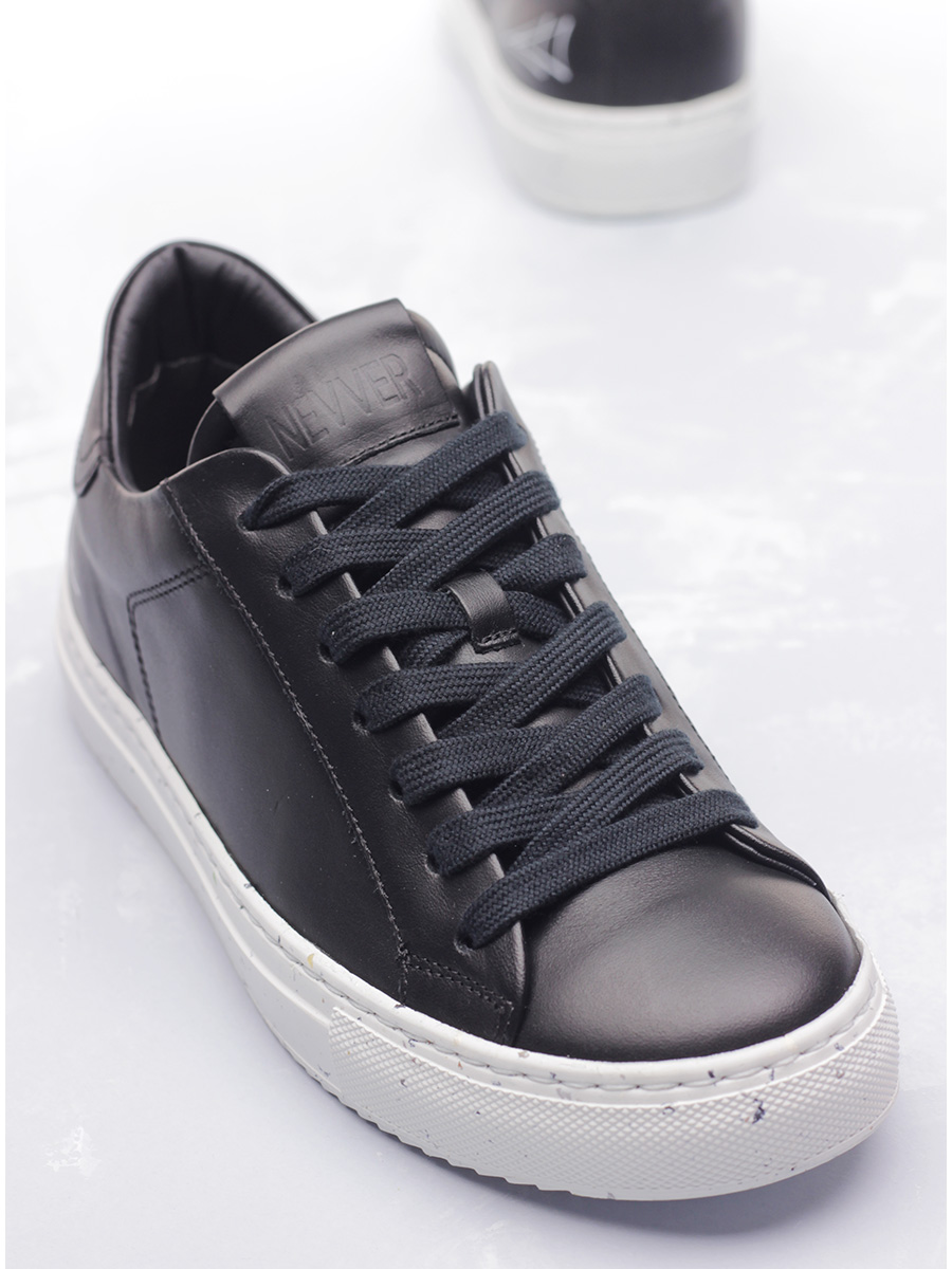 Ledersneaker mit recycelter Gummisohle. Sohlenhöhe 30mm.