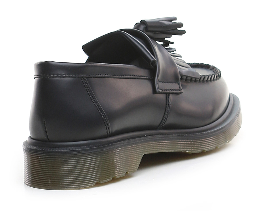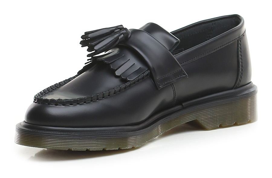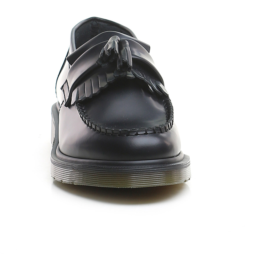 Mokassin aus gebürstetem Leder mit vorderen Quasten und Gummisohle. 35 mm Absatzhöhe, 20 mm Plateau mit 15 mm Absatz.