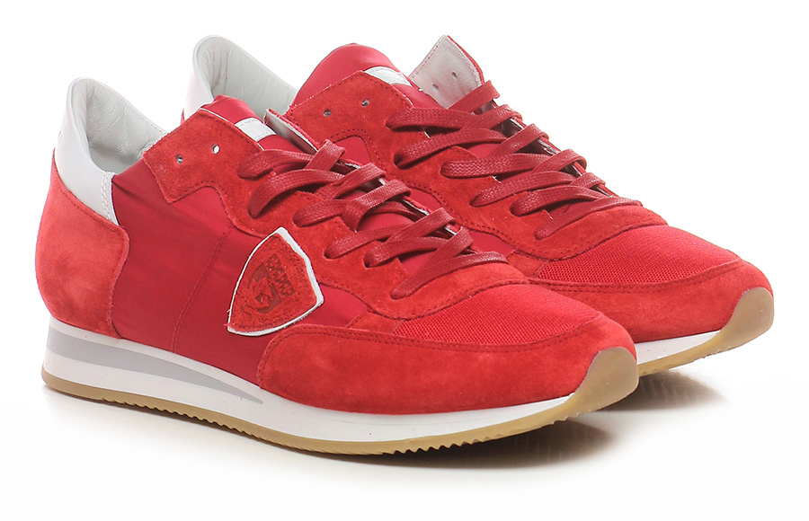 Sneaker in camoscio, pelle e tessuto con suola in gomma. Tacco 30, platform 20 con battuta 10.