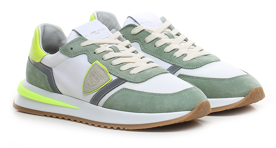 Sneaker aus Stoff, Wildleder und Leder. Gummisohle. 35 mm Absatzhöhe, 25 mm Plateau mit 10 mm Absatz.
