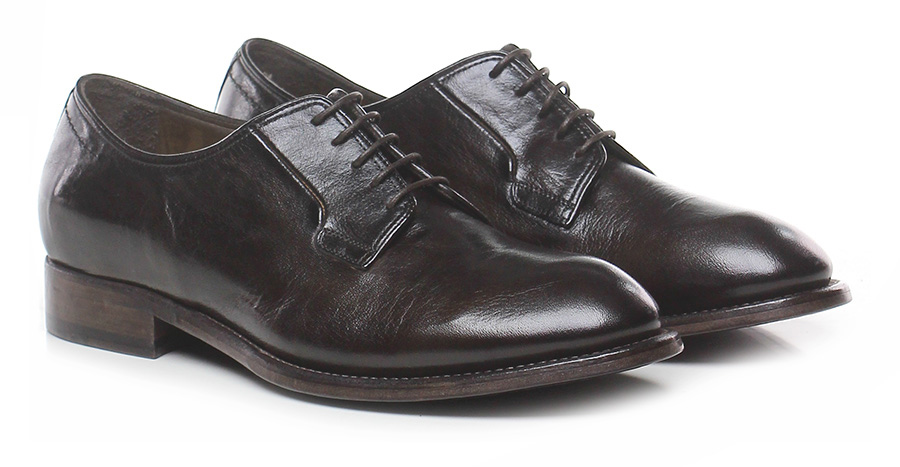 Schnürschuhe aus Leder mit Vintage-Effekt, Leder und Gummisohle. Absatz 30.