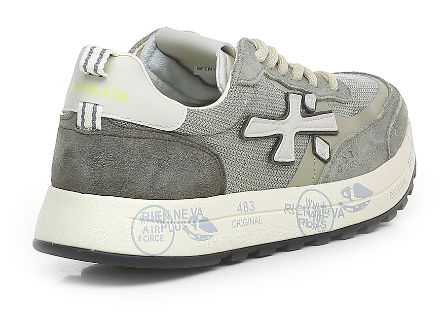 Premiata, die Marke ist Synonym für Avantgarde und Ausdruck, hat ein einziges Ziel: der ideale Reisebegleiter für alle zu sein, die Klischees hassen und an Freiheit glauben. Die Schuhe von Premiata stehen für extreme Kreativität, sie werden von Hand gefertigt, das Material wird ausgehend vom Weißen modelliert, das große Freiheit für die Entwicklung der Formensprache lässt. Der Schuh von Premiata, mit großer Geschicklichkeit und viel Liebe zum Detail gefertigt, besticht durch Eleganz, Komfort und ein unverwechselbares Design.