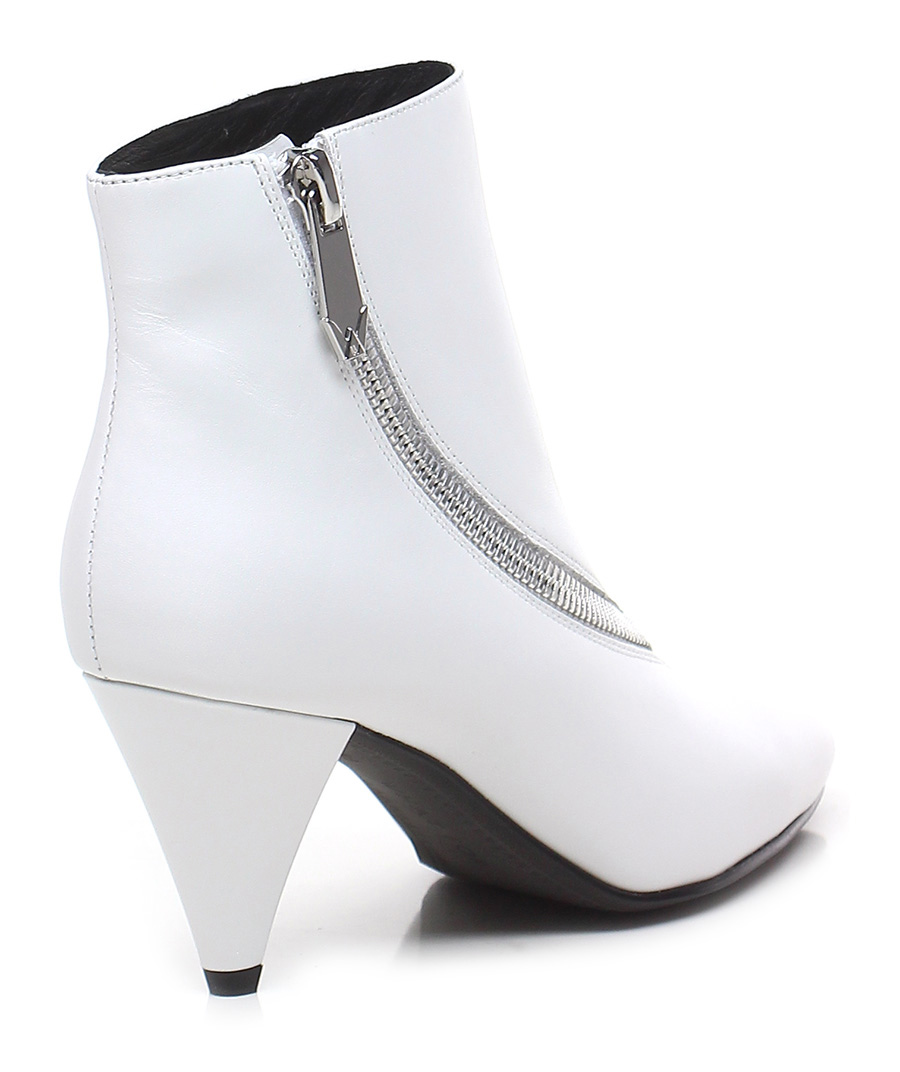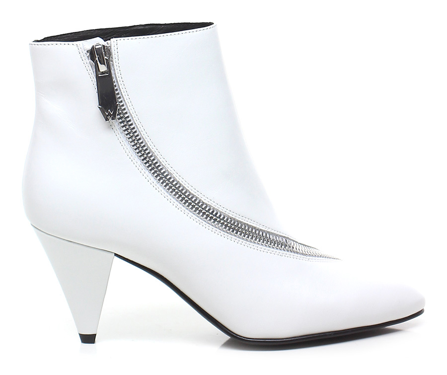 Lederstiefelette mit Reißverschluss an der Außenseite. Gummisohle, 80er Absatz.
