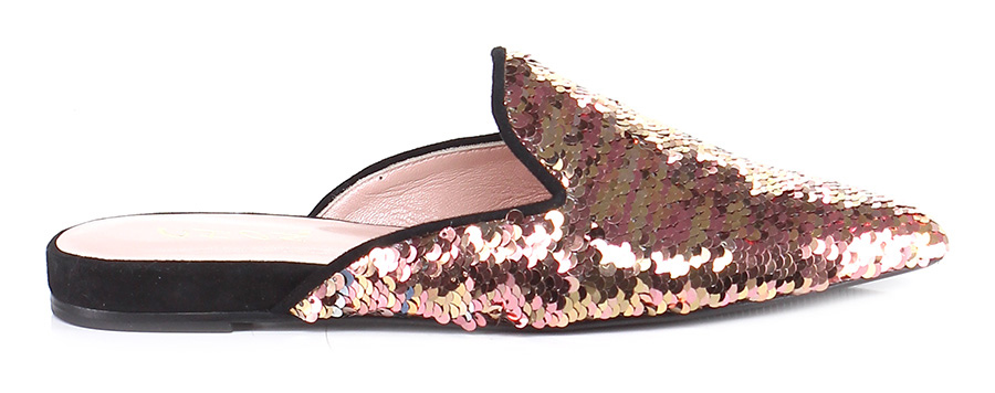 Pailletten-Halbschuh mit Ledersohle, Absatz 20.