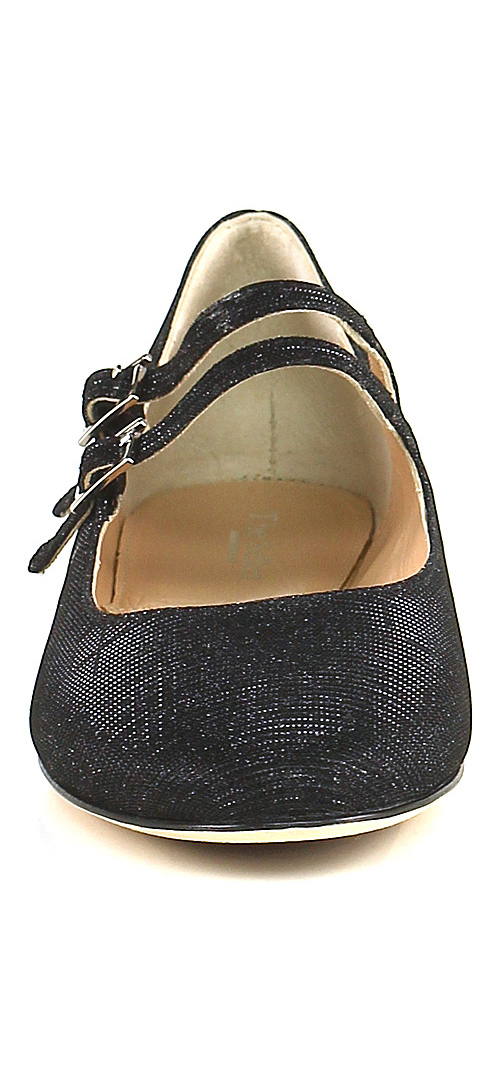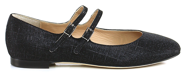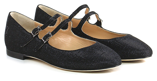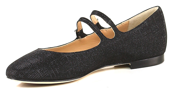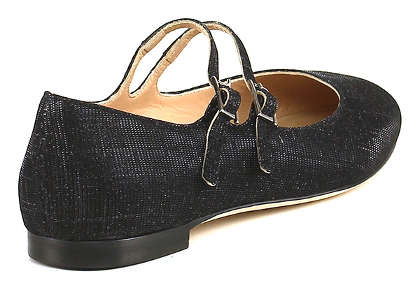 Halbschuh aus Lurexgewebe mit doppeltem Riemen und Ledersohle. Ferse 15.