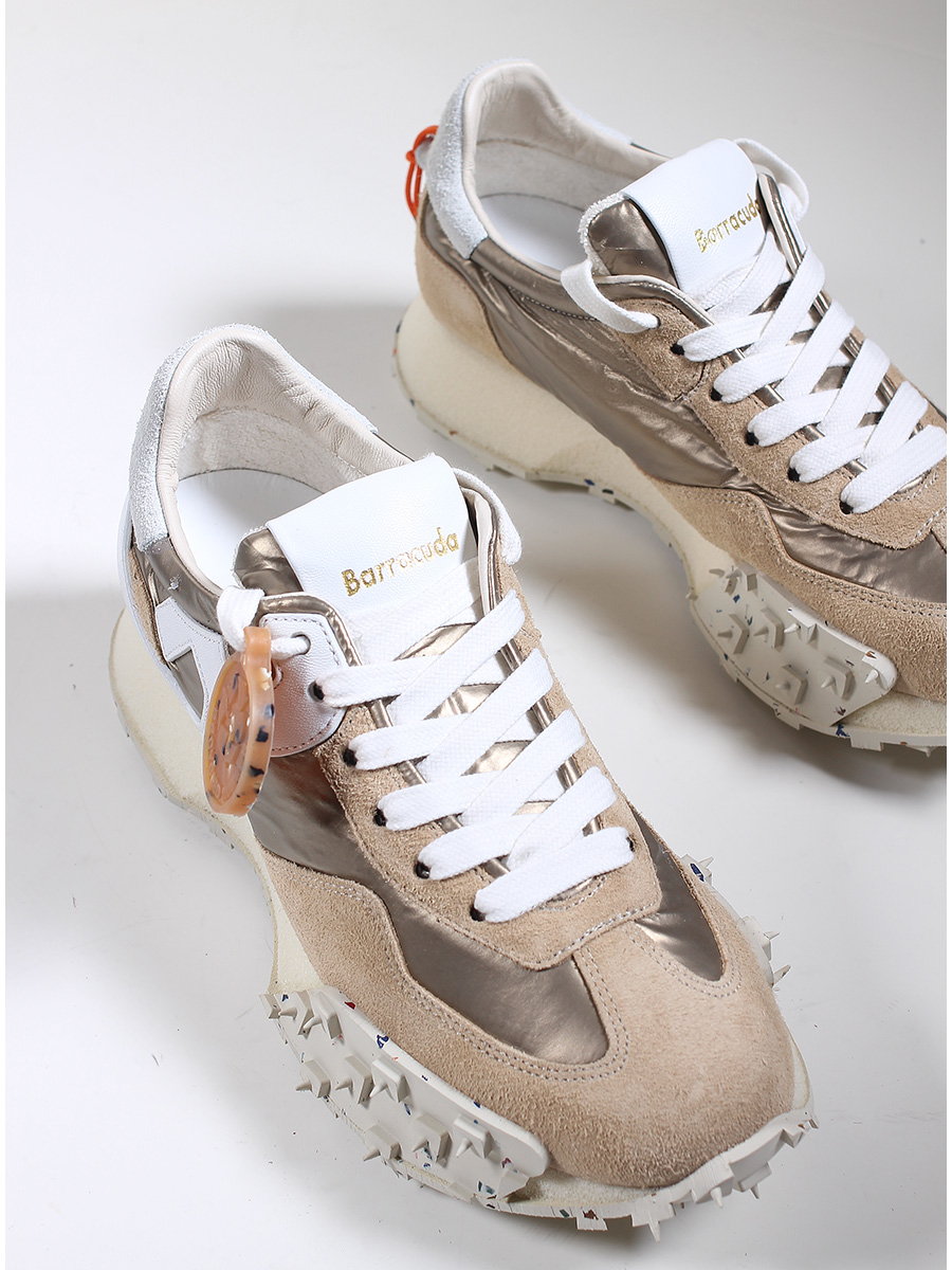 Die Philosophie der Marke Barracuda ist getragen von einer strengen Herstellung, einer handgefertigten Verarbeitung und der Liebe zum Detail, echte Symbole von Made in Italy. Die Schuhe von Barracuda sind immer auf der Suche nach neuen Kombinationen, bestrebt, einen Stil zu erschaffen, der Schritt halten kann mit einer sich ständig verändernden Realität. Das Barracuda-Design ist auffällig und eine kreative Mischung aus modernen und rassigen Linien und verwendet ausschließlich authentische Materialien und wertvolles Leder in einem hochwertigen, komfortablen und eleganten Produkt.