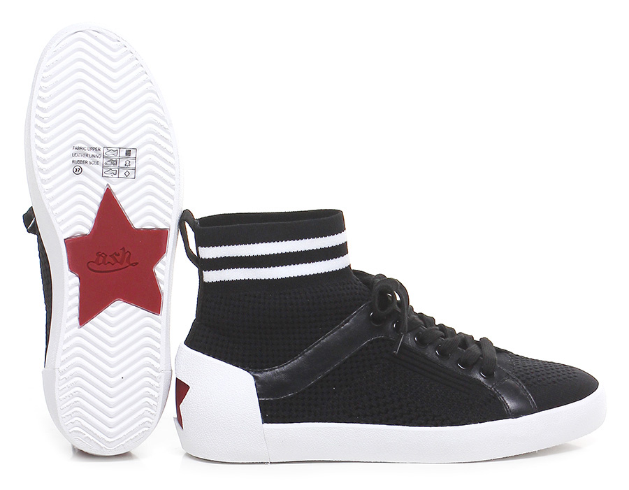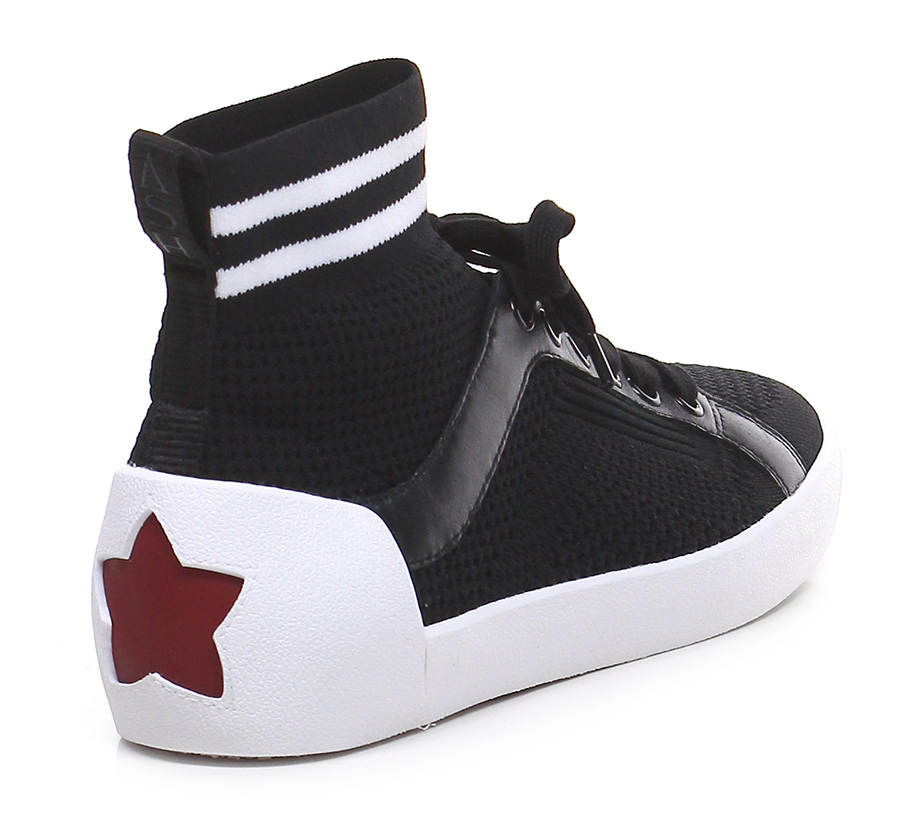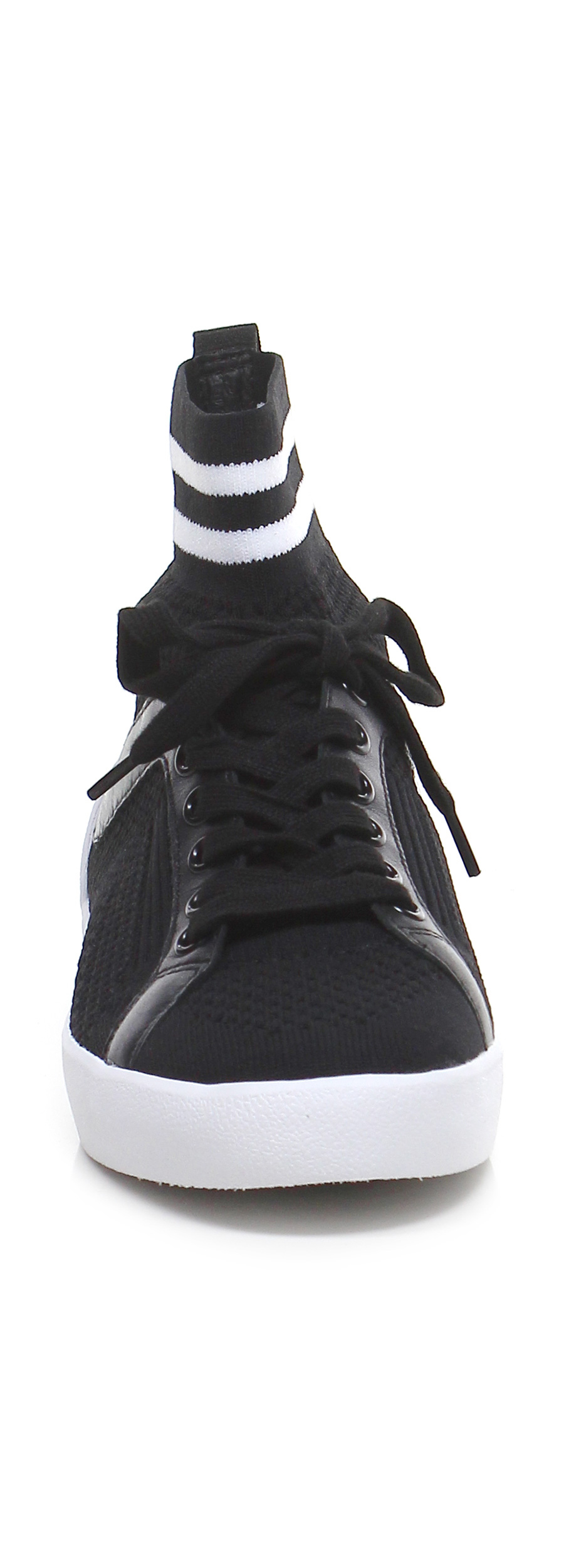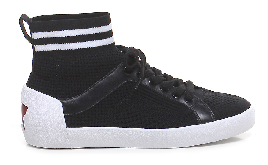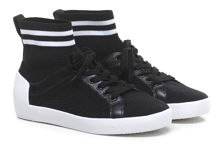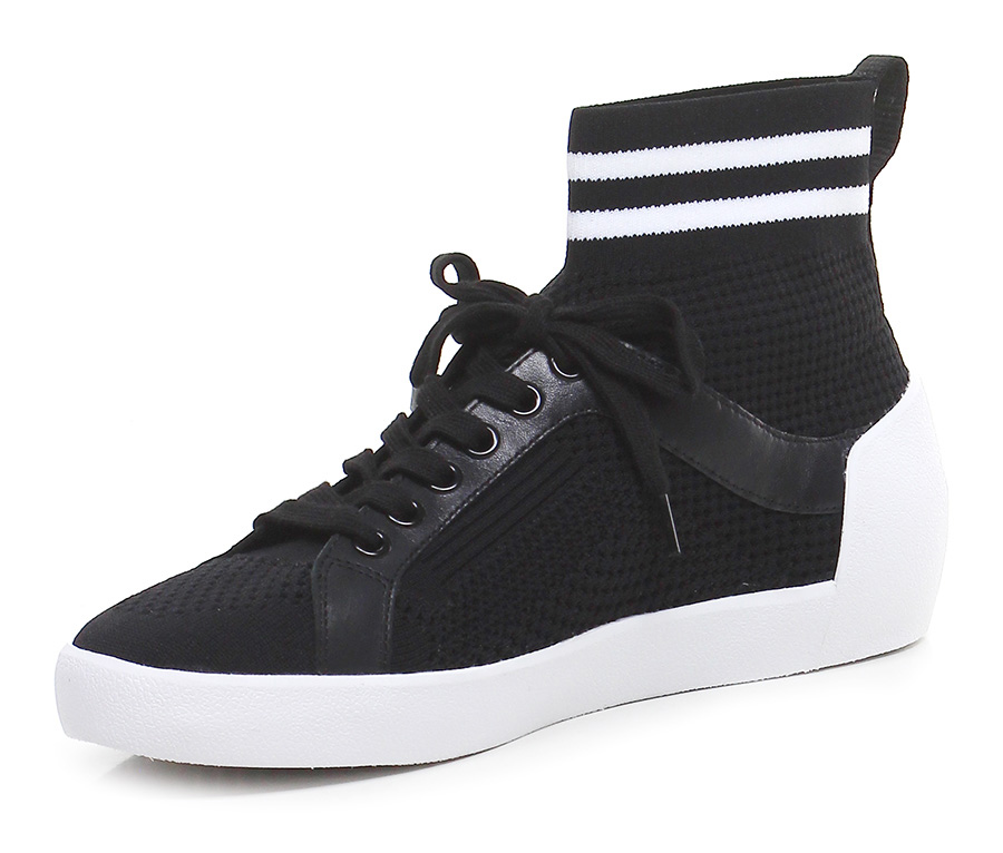 Sneaker in stretch mesh fabric and leather with rubber sole, 30 heel, 20 platform with 10 ledge.