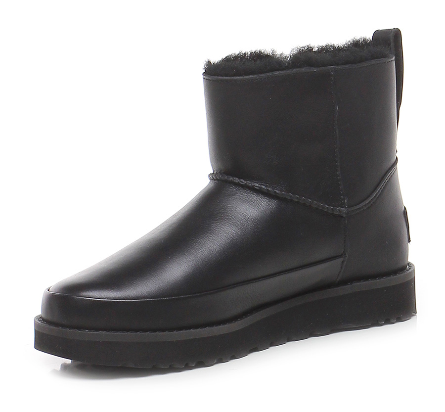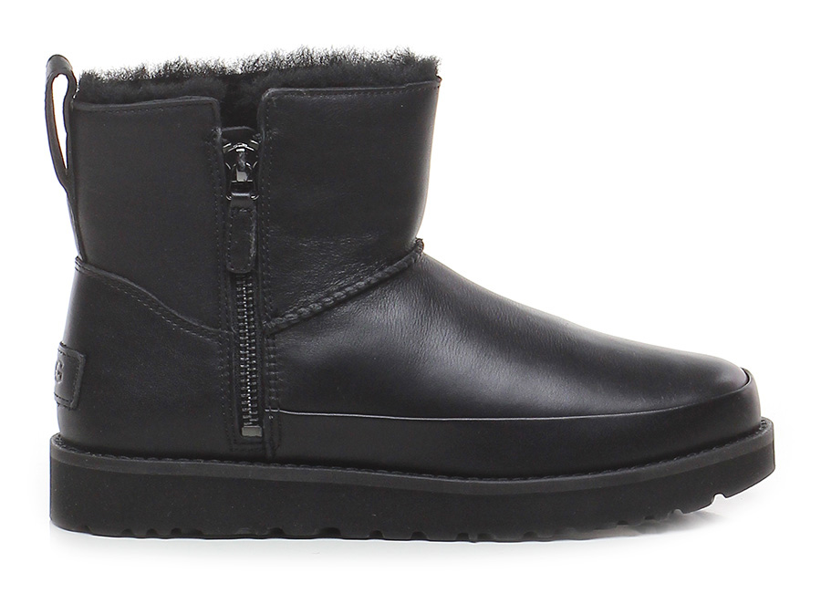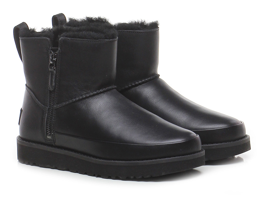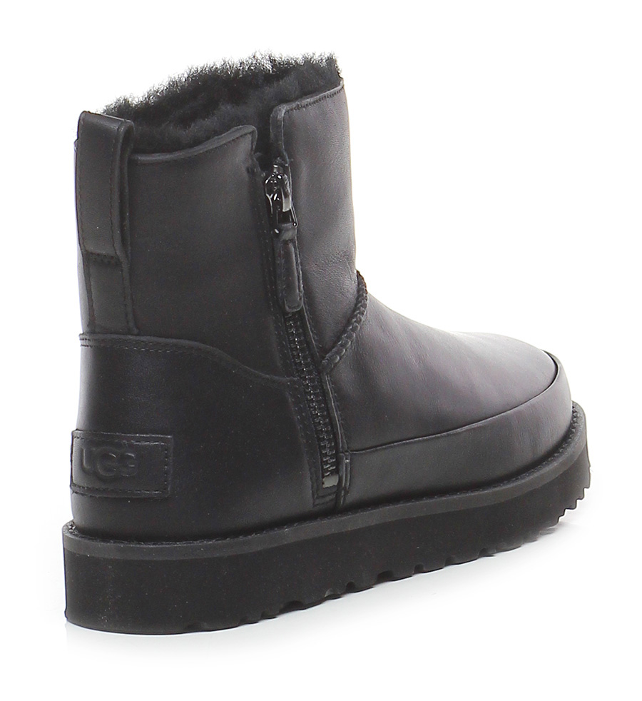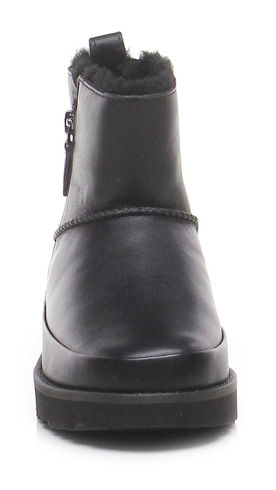 Leather ankle boot with sheepskin lining, external side zip. Rubber sole. Heel 25, platform 20 with bar 5.