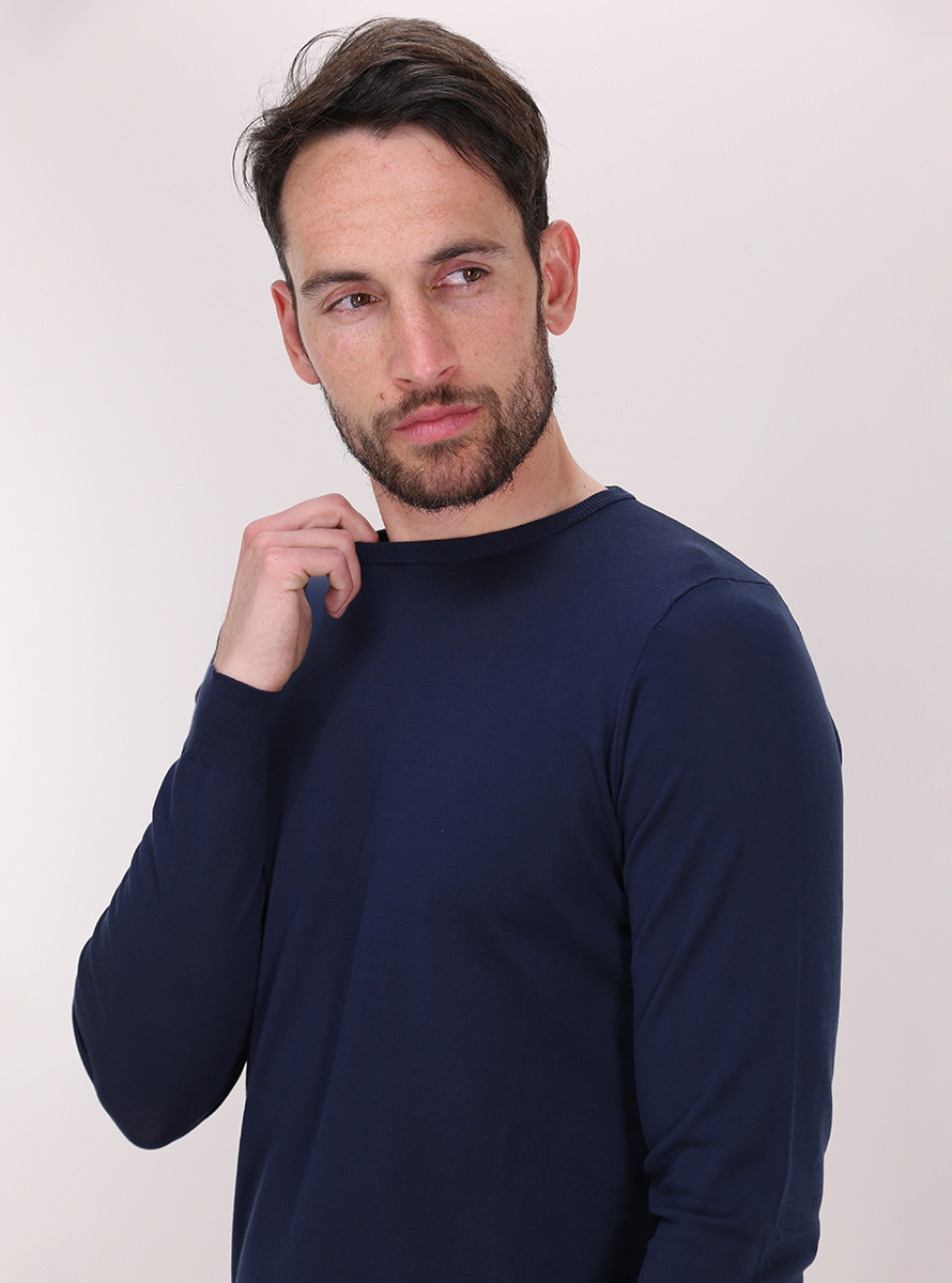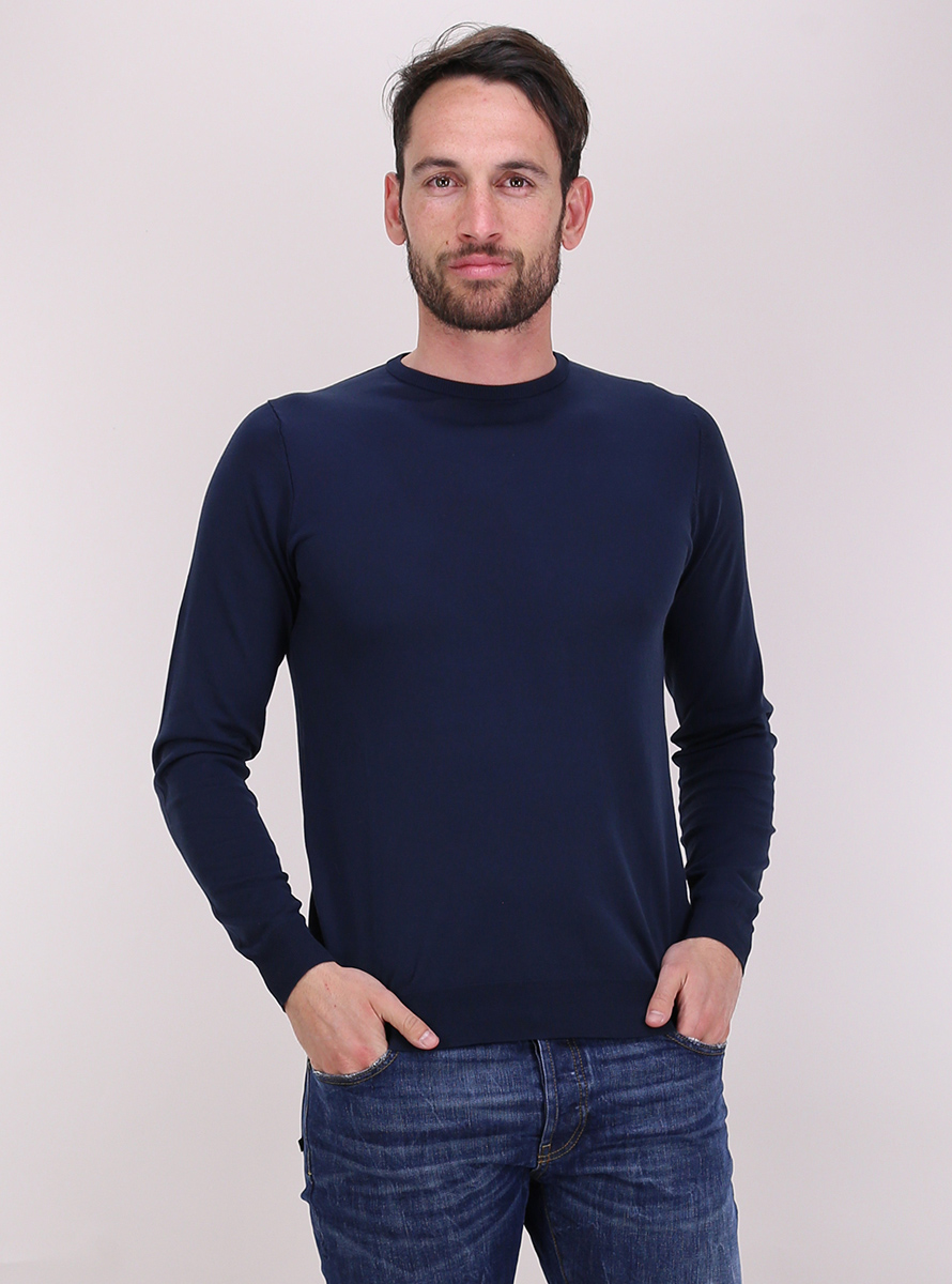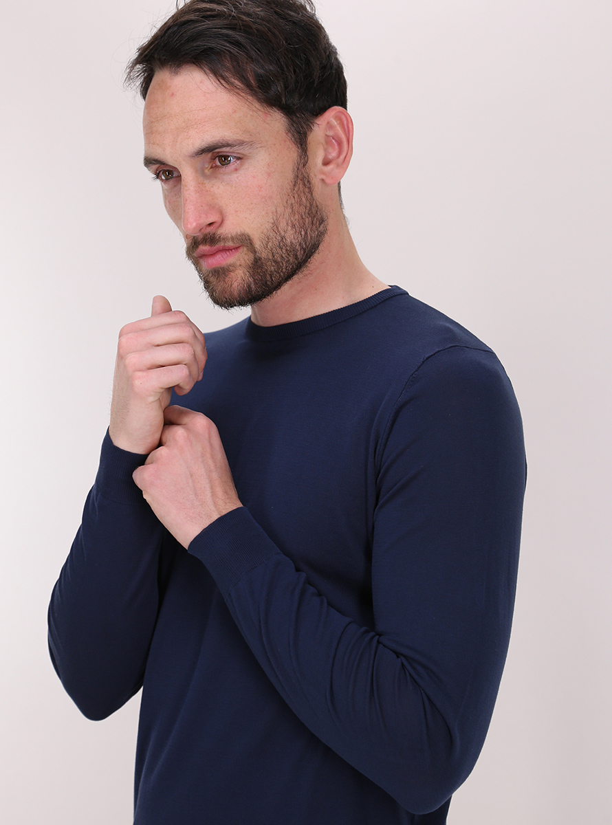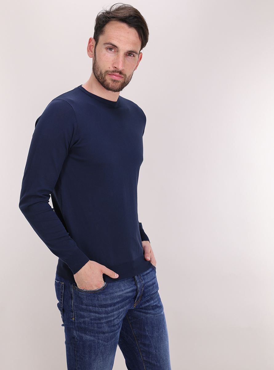 Jeordie's sweater in superfine cotton with long sleeves and round neck. Cuff edges. The model is 1.80 tall and wears size M.