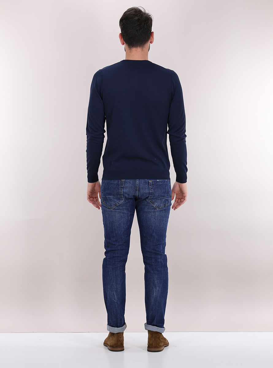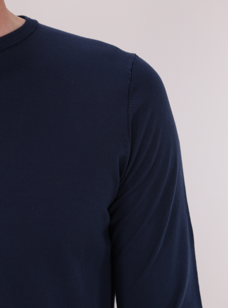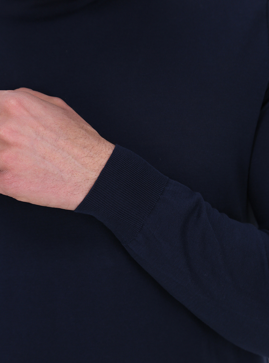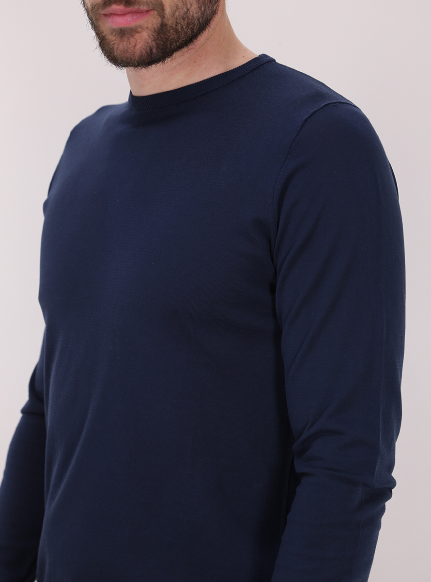 Jeordie's sweater in superfine cotton with long sleeves and round neck. Cuff edges. The model is 1.80 tall and wears size M.