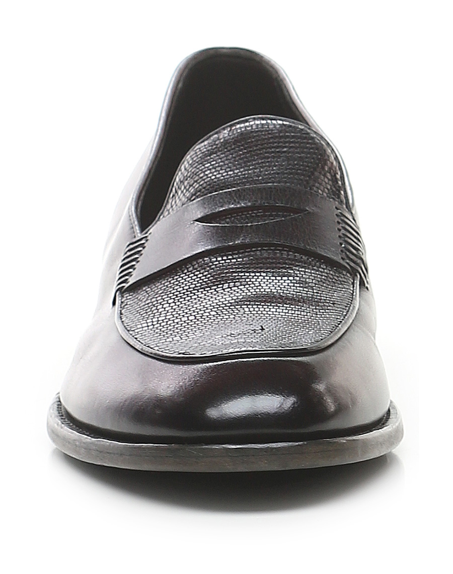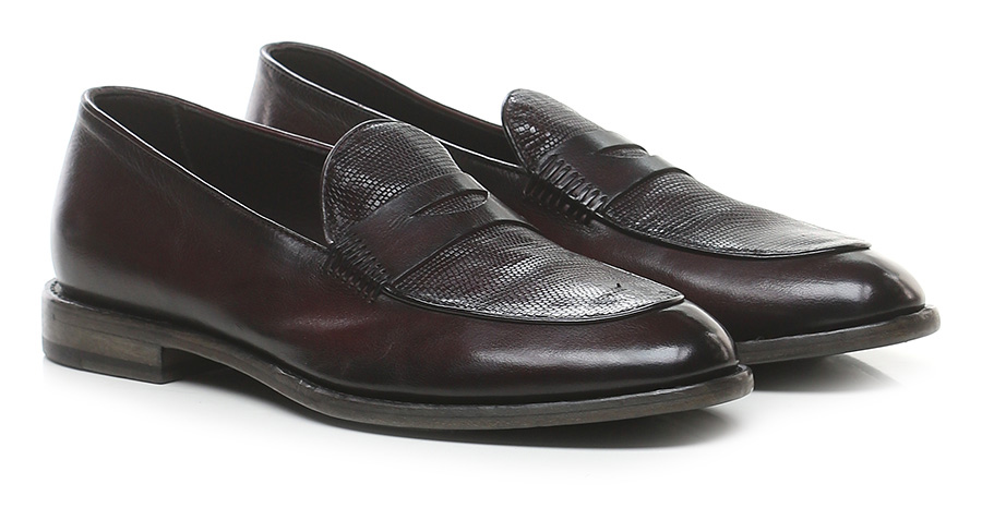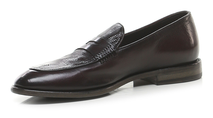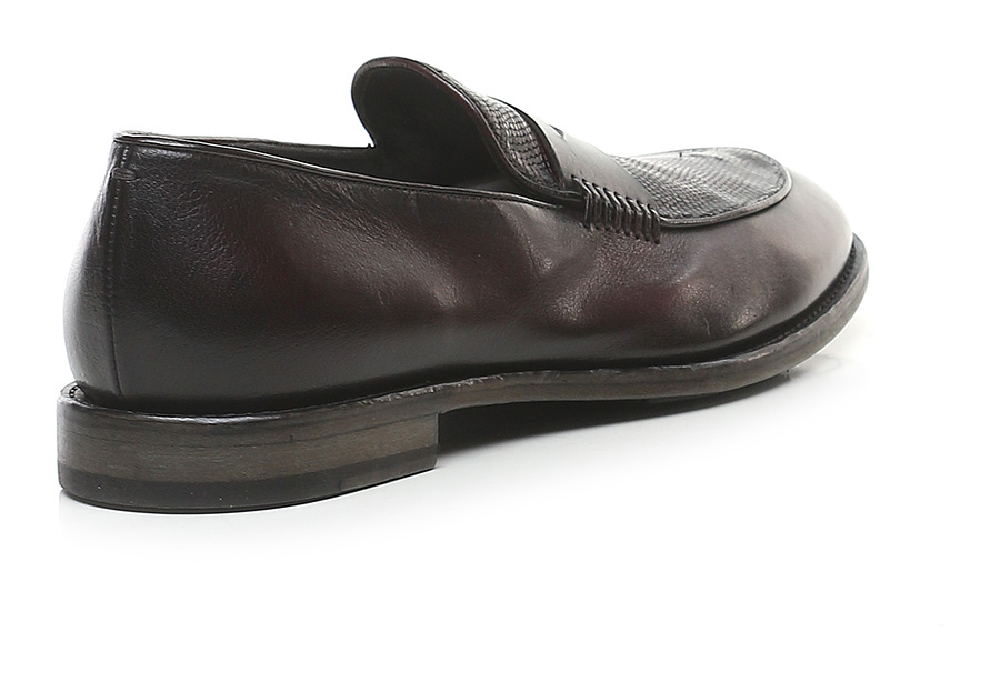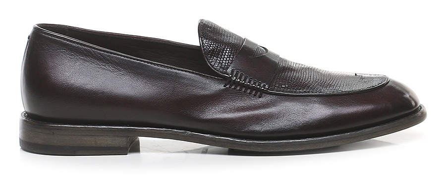 Moccasin in vintage effect leather and tejus print leather with leather and rubber sole. Heel height 25mm.