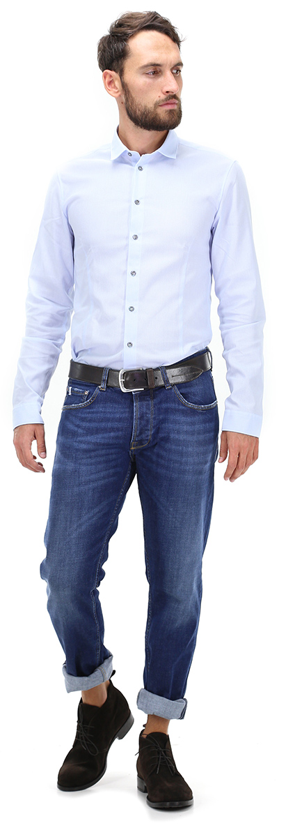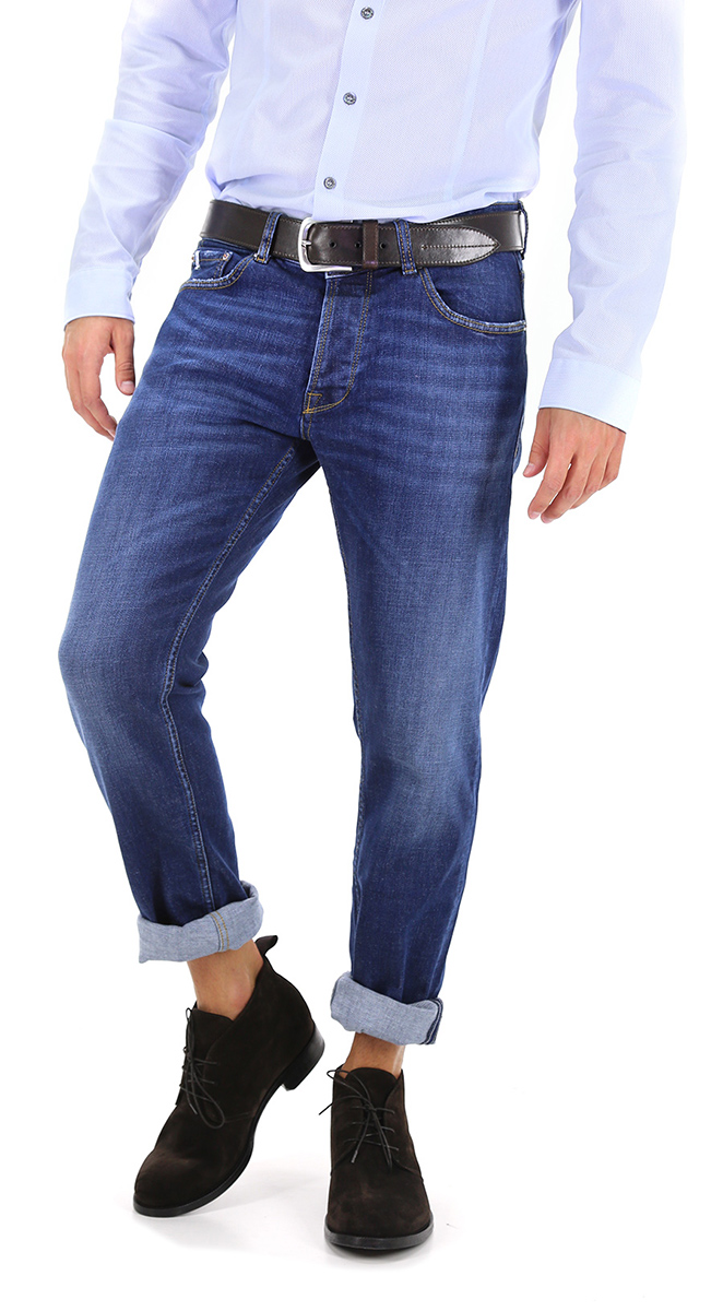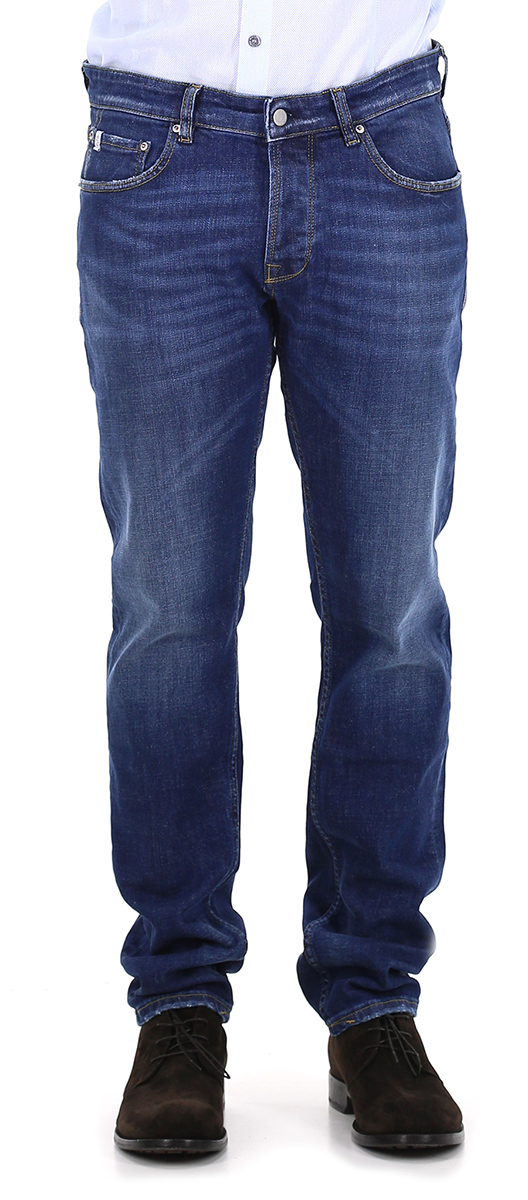 Stretch cotton jeans. Regular slim fit. The model is 1.81 cm tall and wears size 32.