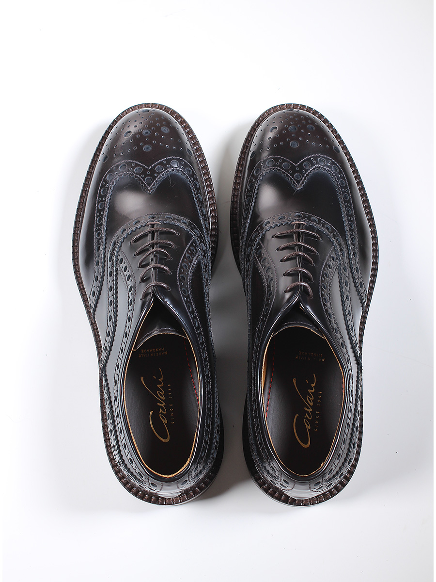 Symbol of the outstanding elegance of made in Italy Corvari brand connects tradition to technological innovation, following fashion trends. Corvari shoes are handmade, refined, manufactured with a careful selection of hand-treated fine leather, attention to detail and are guaranteed by the brand's expertise. Thanks to the hand customisation of soles, Corvari shoes can boast an innovative and particularly decorated traditional style.