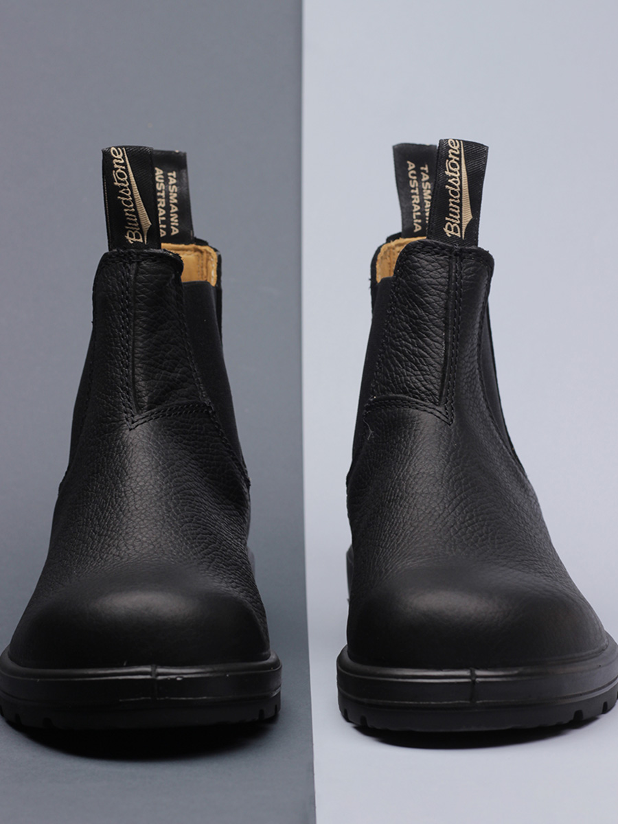 Textured leather ankle boot with side elasticated inserts and rubber sole. 40mm heel height, 25mm platform with 15mm ledge.