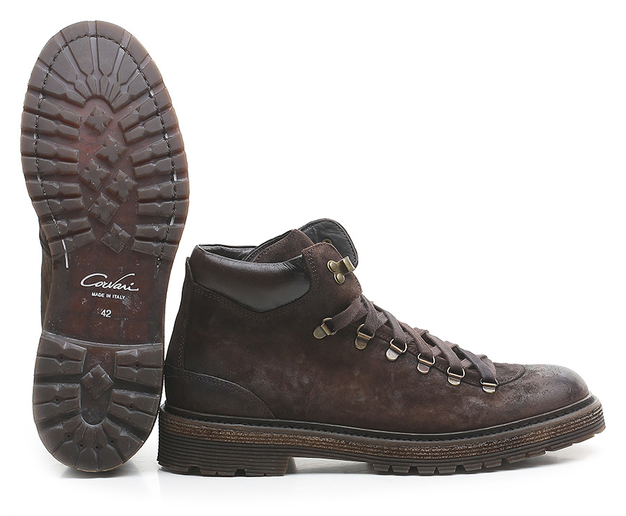Symbol of the outstanding elegance of made in Italy Corvari brand connects tradition to technological innovation, following fashion trends. Corvari shoes are handmade, refined, manufactured with a careful selection of hand-treated fine leather, attention to detail and are guaranteed by the brand's expertise. Thanks to the hand customisation of soles, Corvari shoes can boast an innovative and particularly decorated traditional style.