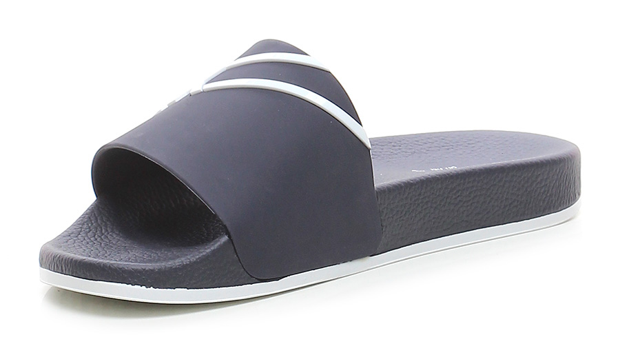 Band sandal in rubberized PVC with logo lettering. Rubber sole. Heel 25, platform 20 with ledge 5. Shaped insole