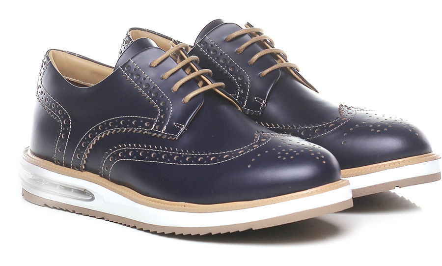 Stringata in pelle spazzolata stile Oxford con camera d'aria interno suola. Suola in gomma. Tacco 35, platform 20 con battuta 15.