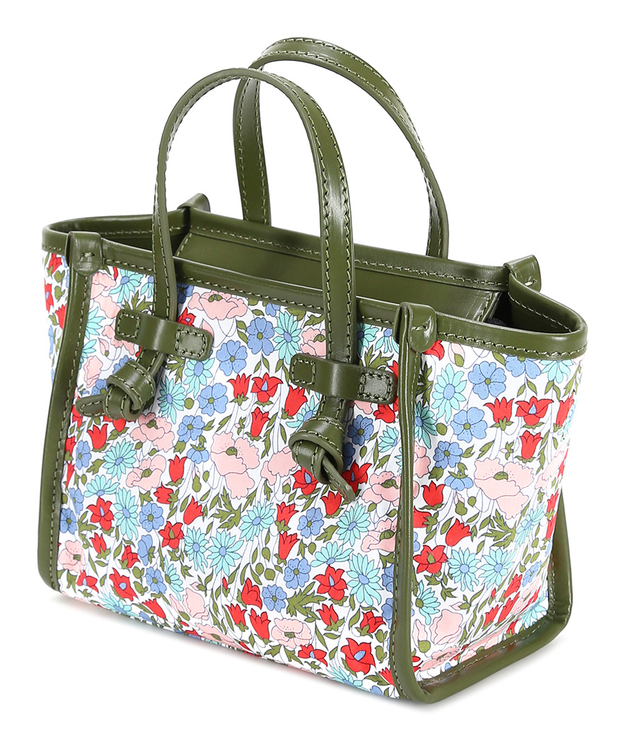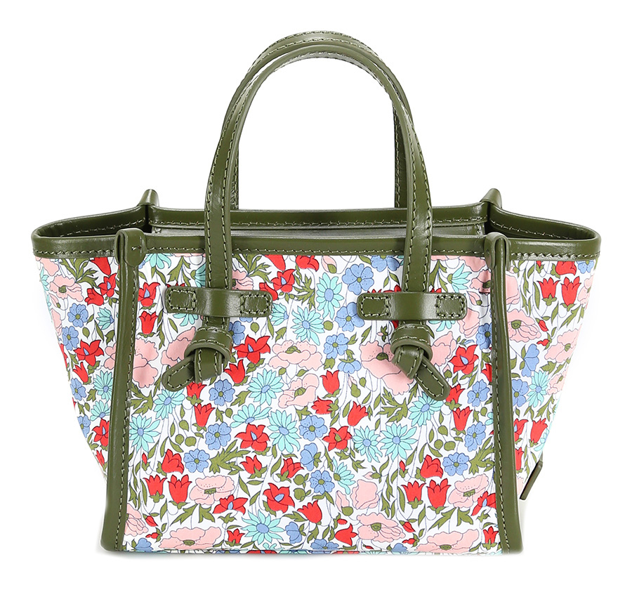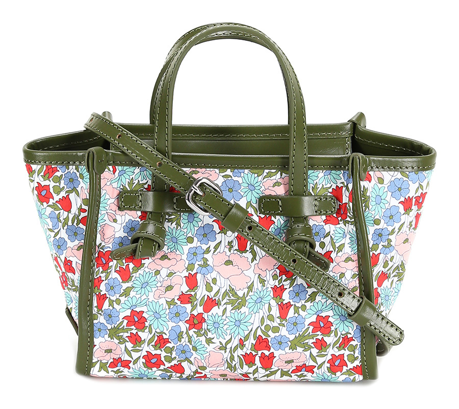 Fabric bag with zip closure. Leather profiles. Shoulder strap included. Measures 26 x 16cm. Silver details.
