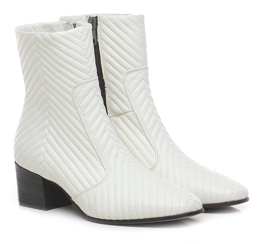 Quilted leather ankle boot with internal side zip, leather sole. Heel 50.