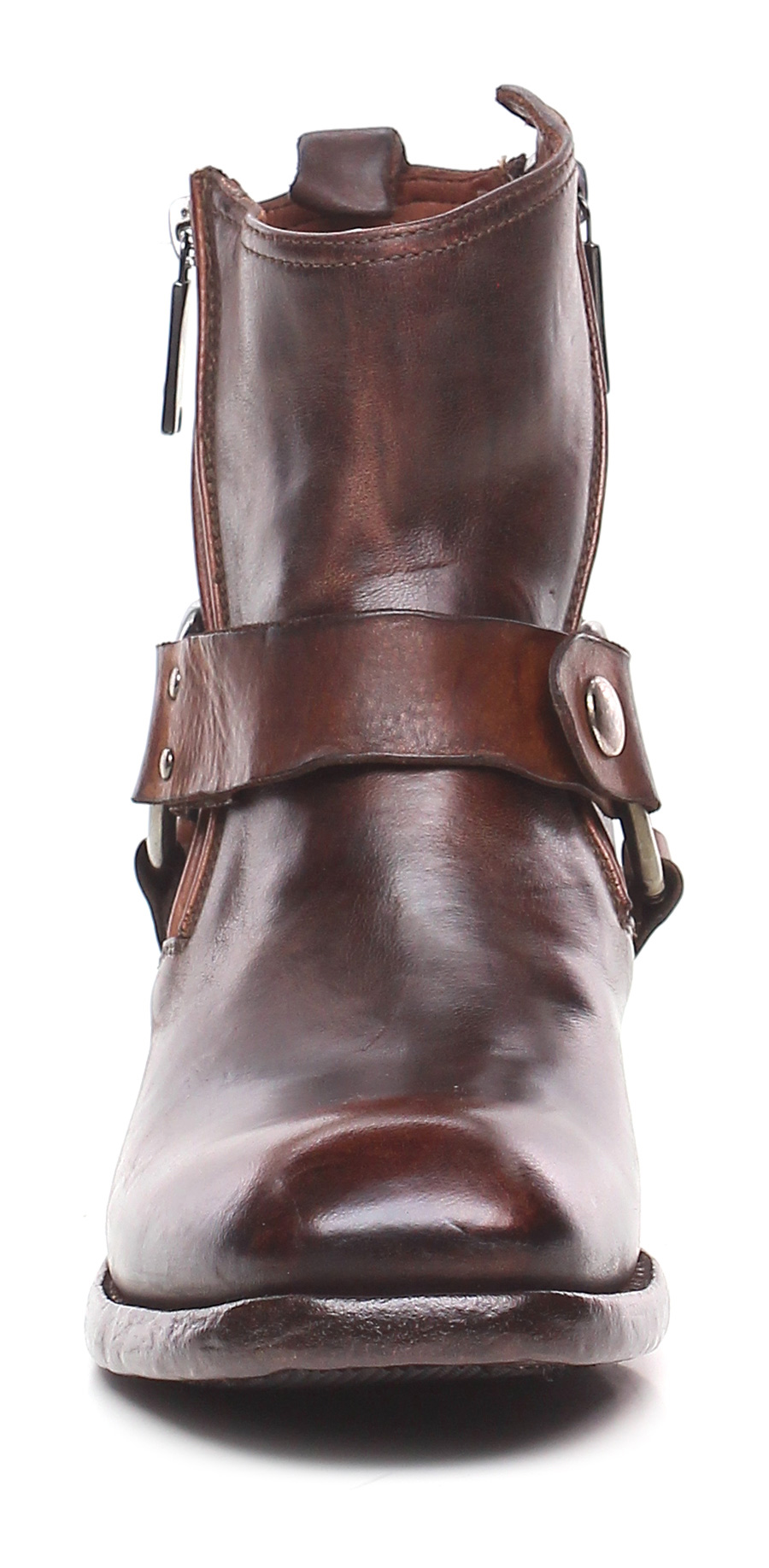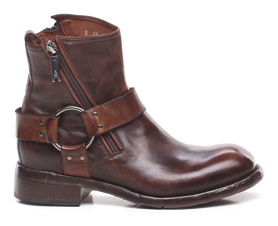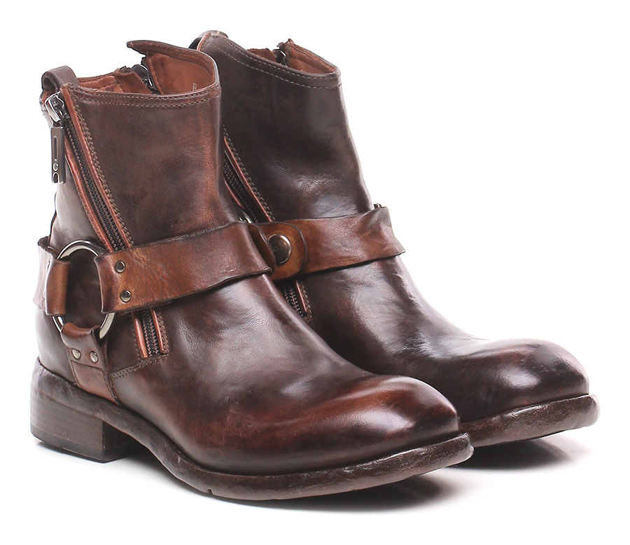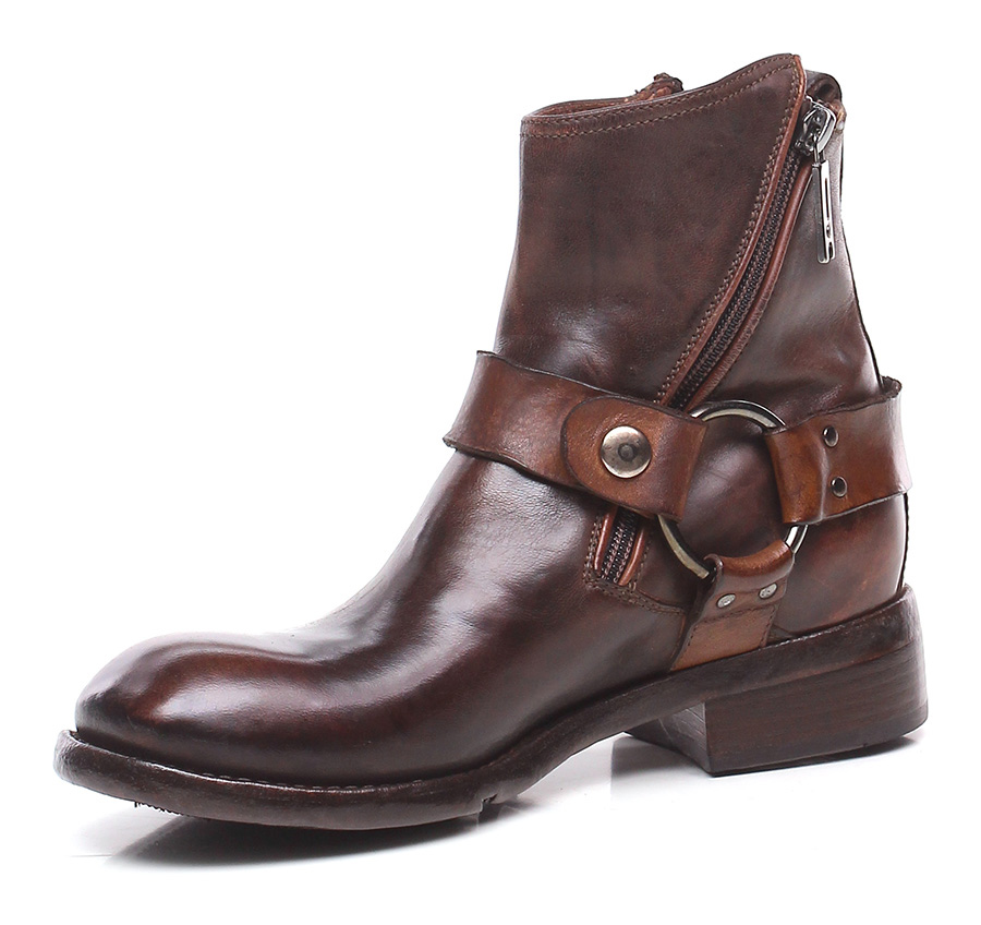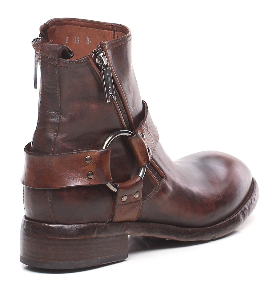 Vintage leather ankle boot with leather and rubber sole. Zip on both sides and ankle collar strap. 40 heel, 15 platform with 25 bar.