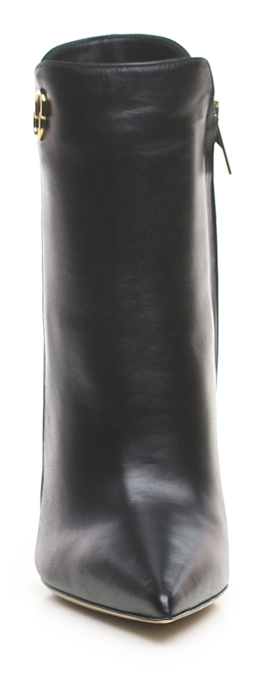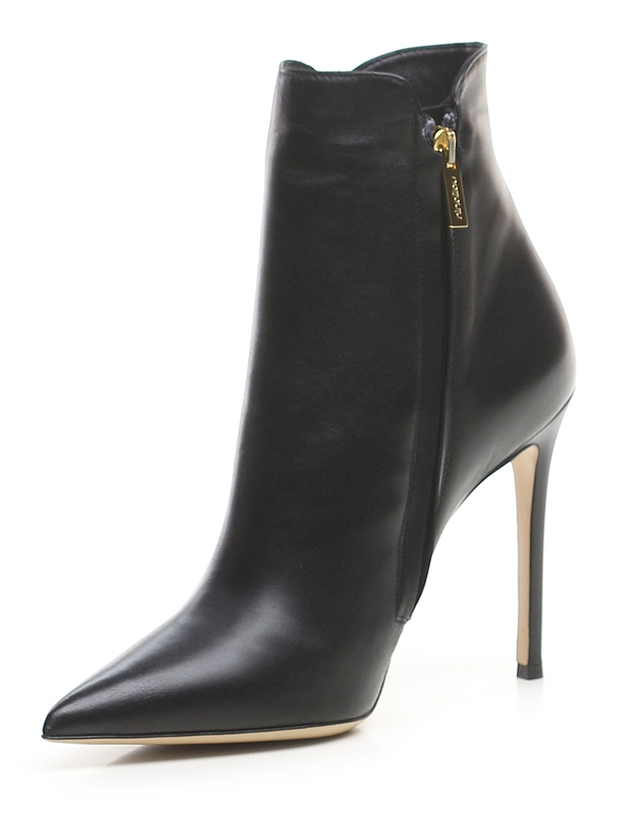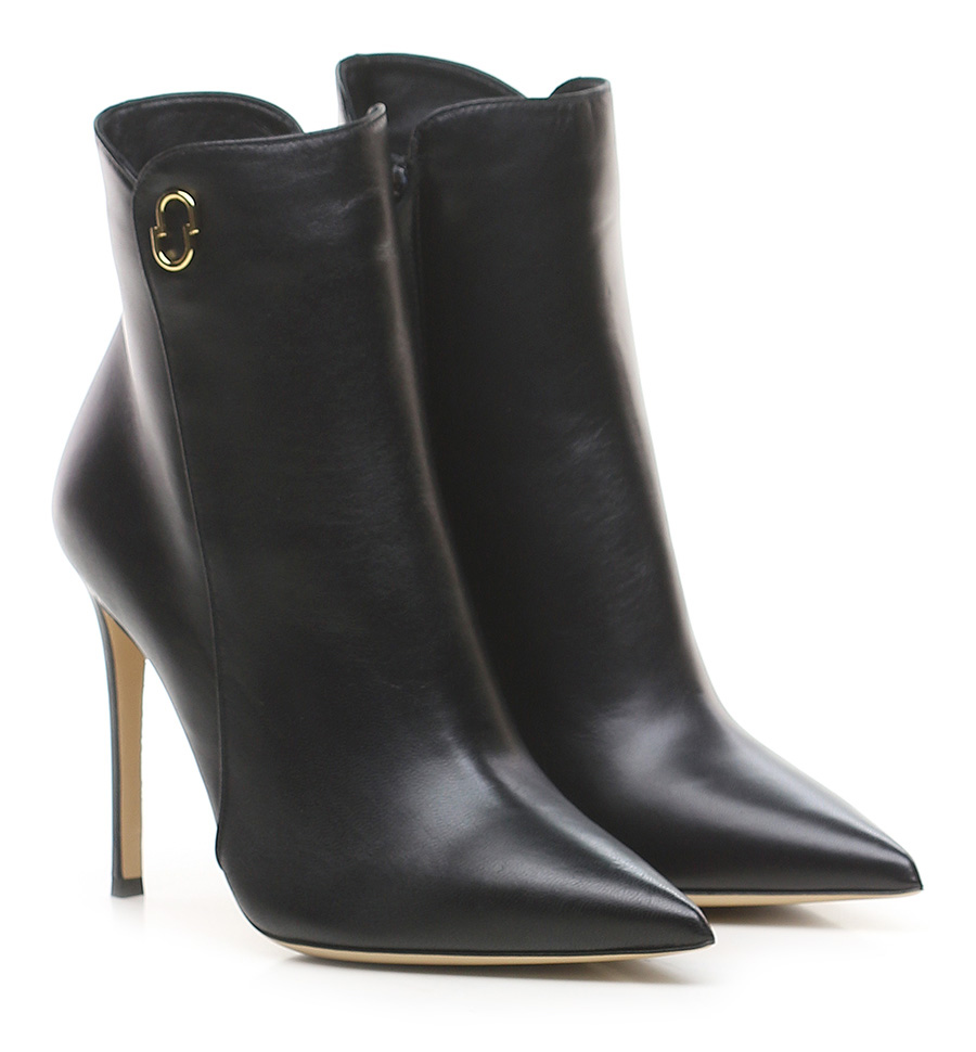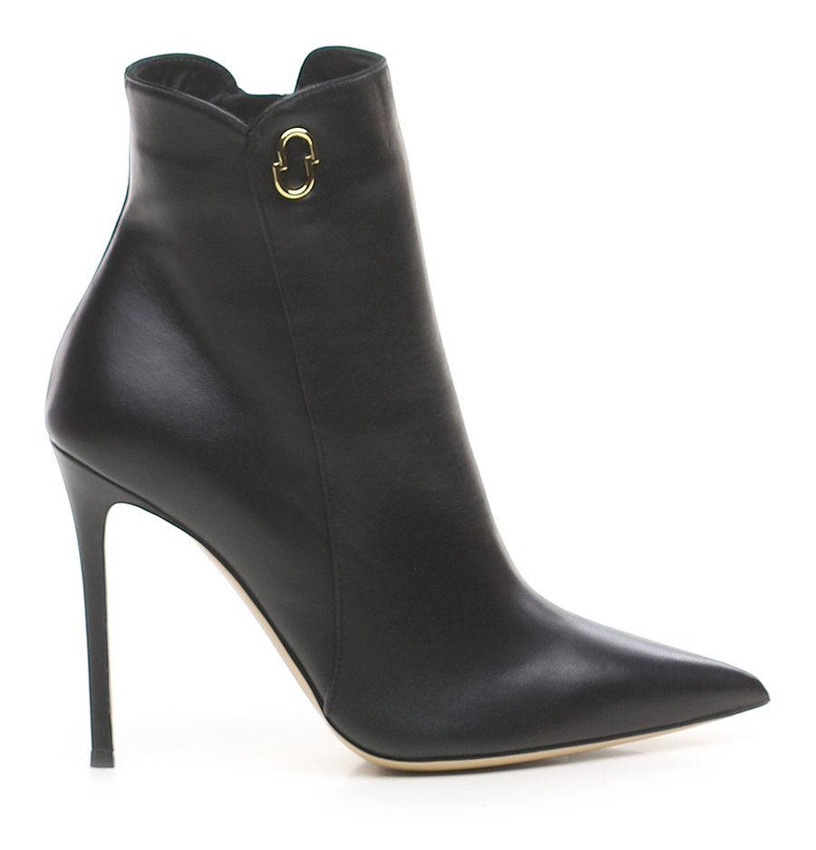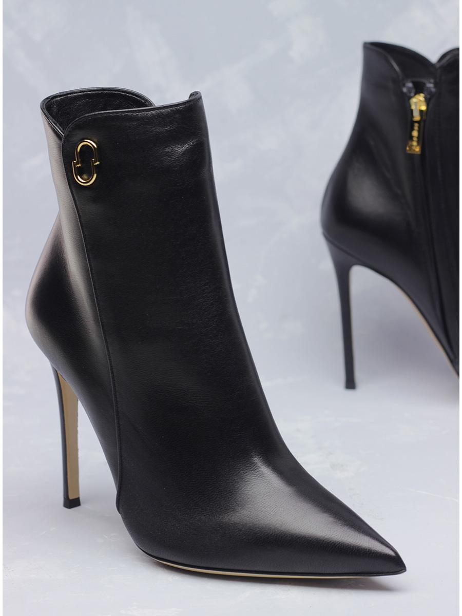 Leather ankle boot with side zip and leather sole. Heel height 105mm.