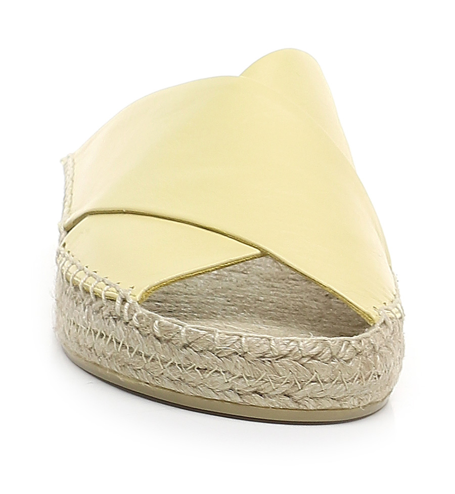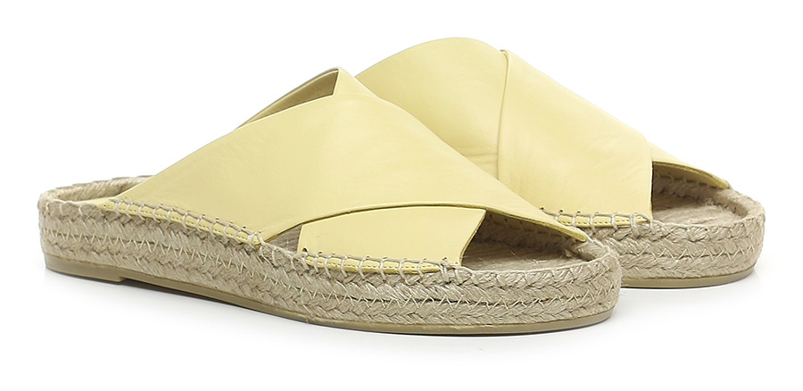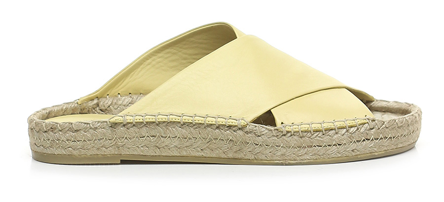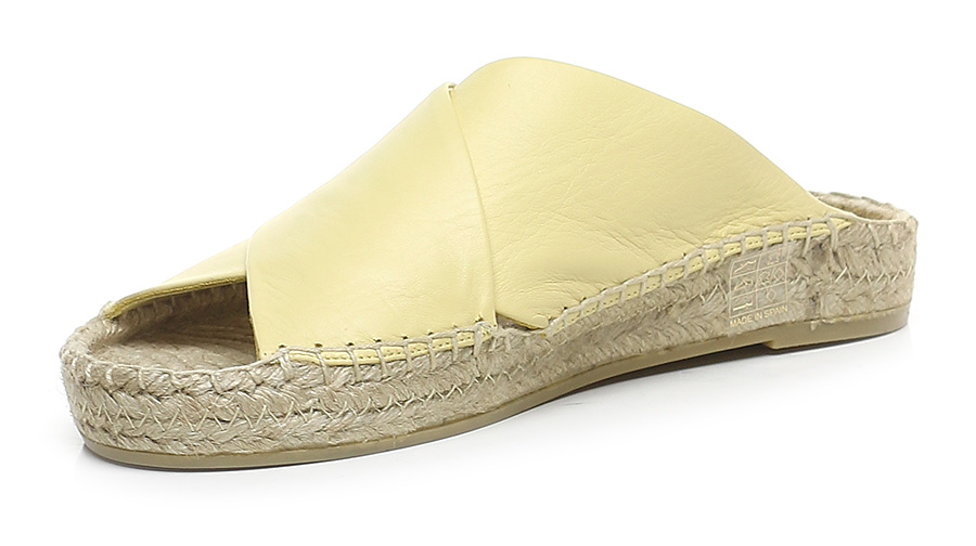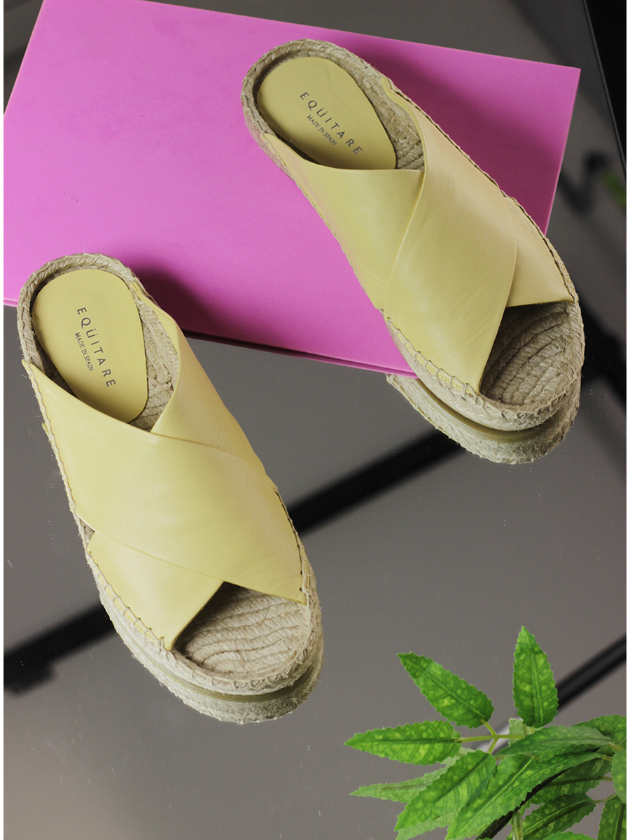 Leather sandal with rubber sole. 25mm heel height, 20mm platform with 5mm ledge. Rope sole profile and insole.